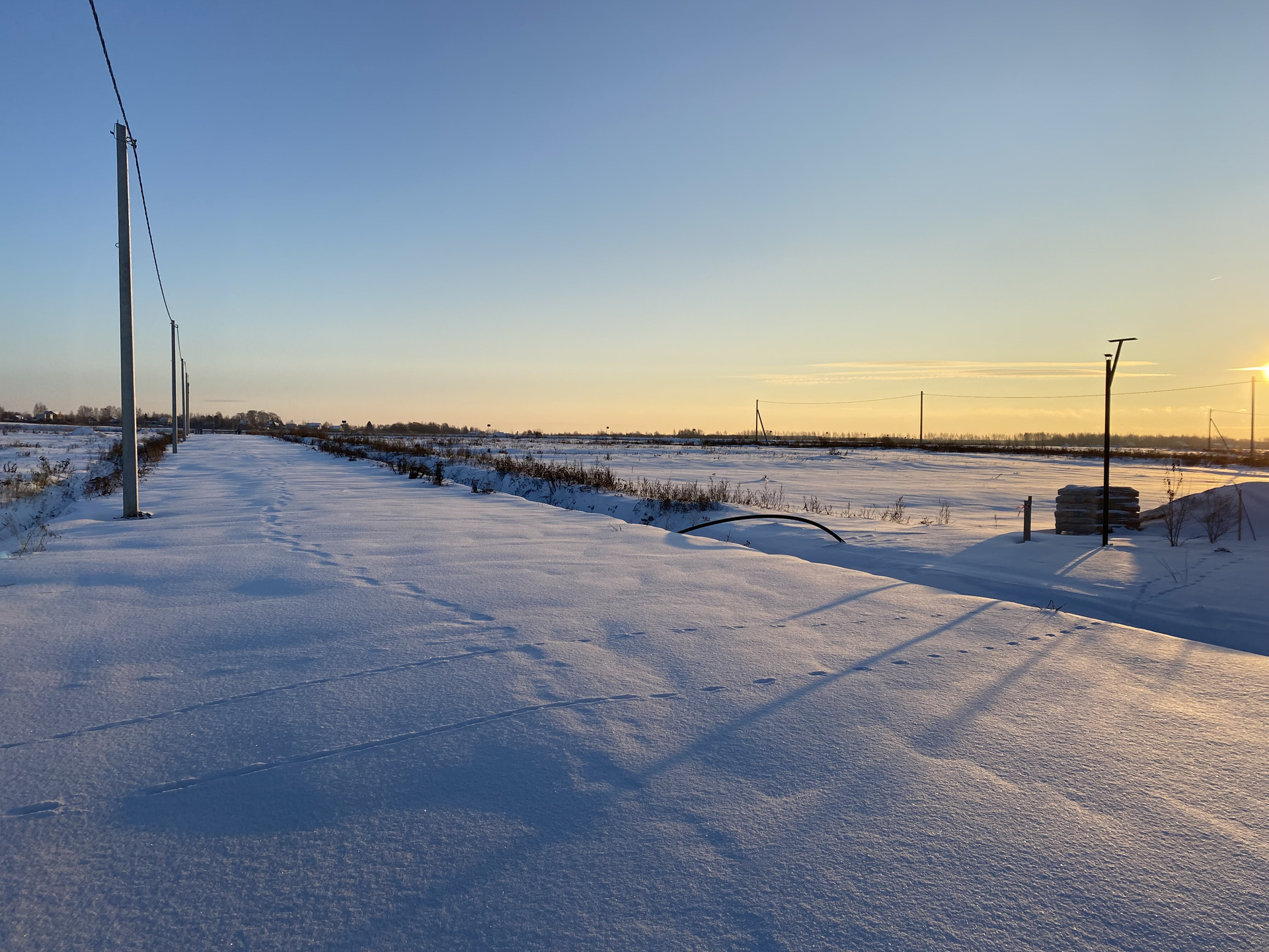 Дороги, мелиорация, электричество, магистральный газ, построены две очереди поселка со своими особенностями каждая.