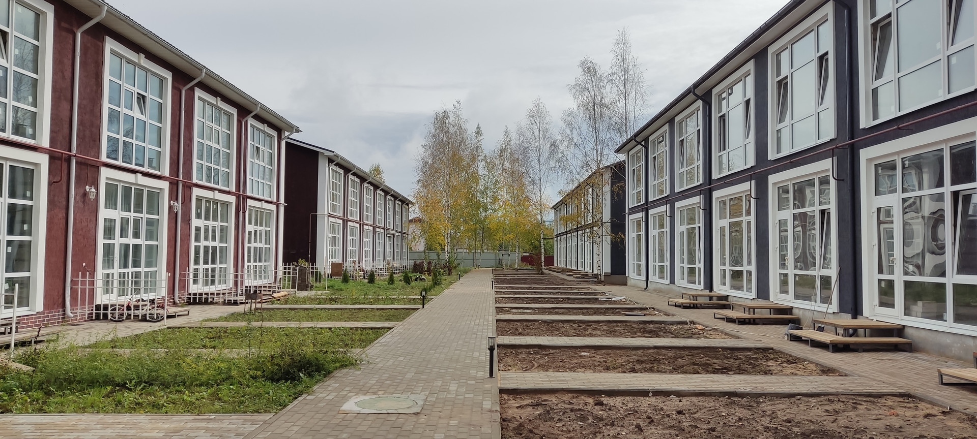 Полностью благоустроенная закрытая территория ЖК. Дворовая часть: брусчатка, ландшафтный дизайн, фонари, зеленые насаждения. У тауна своя парковка, двор с газоном и зона для барбекю. Жилой комплекс построен по лучшим образцам европейских урбанизаций.