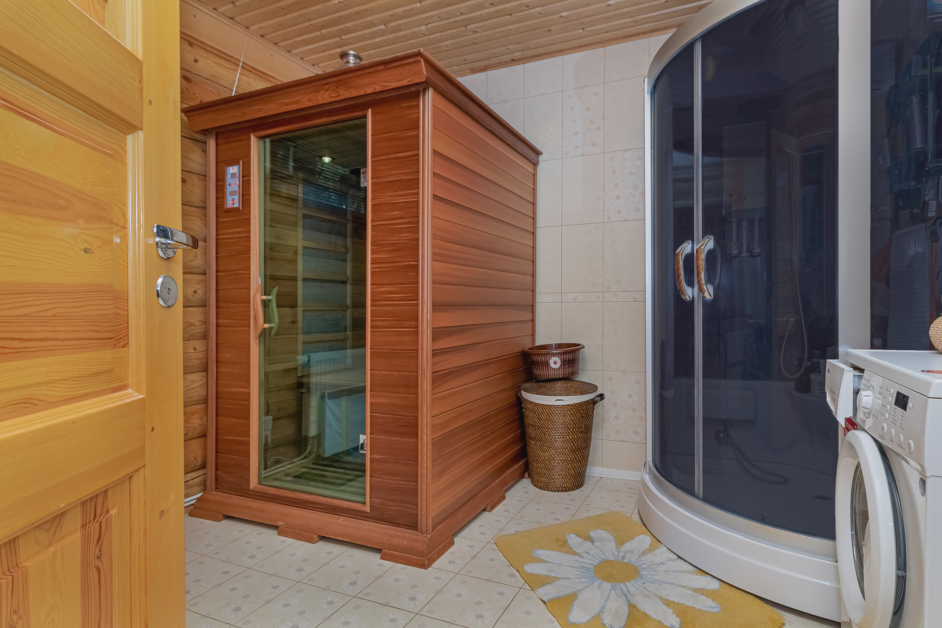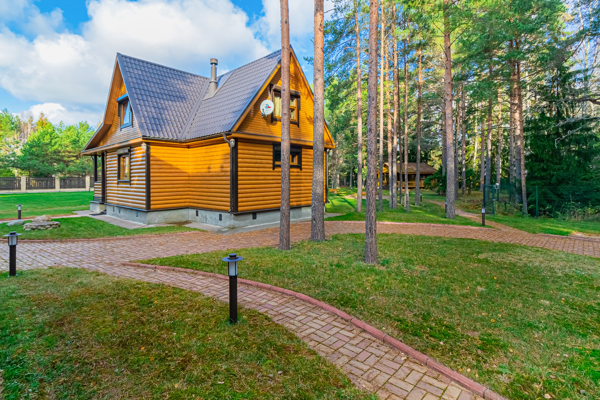 Продается загородная резиденция по адресу: Ленинградская область, Выборгский район, Полянское сельское поселение, пос. Зеленая Роща, СНТ "Зеленая Роща-2", уч. 191 в 70 км от КАД Санкт-Петербурга. Идеальное место для восстановления жизненных сил и энергии. На земельном участке 33 сотки расположены: 1. жилой двухэтажный дом с террасой 110 м2; 2. жилой двухэтажный гостевой дом с сауной 48 м2; 3. гараж; 4. котельная с навесом на два машиноместа; 5. хозблок; 6. летний домик; 7. мангальный комплекс. Рощинский двухэтажный дом: стены-модульное калиброванное бревно вакуумной сушки диаметром 19 см., утеплитель(минеральная вата)100 мм, блок-хаус, окрашенный финской краской Валтиколор-экстра; крыша-металлочерепица финская, утепление (минеральная вата+пеноплекс); Отопление на жилой и гостевой дома: газовый котел "Buderus" (Германия) напольный с блоком управления, установленный в котельной вне жилого дома; Водоснабжение: скважина 136 м с питьевой артезианской водой с Гдовского горизонта. Бойлер 200 л в котельной. Водо и теплоснабжение жилого и гостевого домов организовано по отдельным теплотрассам. Отделка дома внутри: калиброванное бревно, покрыто финским экологическим составом, сохраняющим естественный цвет дерева, пол-паркетная доска, доска из дубового массива, керамогранит, теплый пол в санузлах и кухнях-гостиных. Электрическая мощность 10,5 квт, резервный дизель-генератор JCB 10 квт (Великобритания). В жилом доме-электрическая плита и духовой шкаф, в гостевом-газовая плита. Канализация-в ж/б основе септик с полем рассеивания. Охрана: ЧОП "Сенат", забор по периметру и автоматические ворота. Окна всех строений оборудованы защитными роллетами. Дороги: асфальтированная дорога до въезда в дачный поселок и грунтовая внутри него, на участке проезды выполнены клинкерной плиткой (Германия). Окружение: сосновый лес, форелевый ручей в каньоне по границе участка, можжевельник, черничник, папоротник, ландыши, тишина, 400 м до залива.