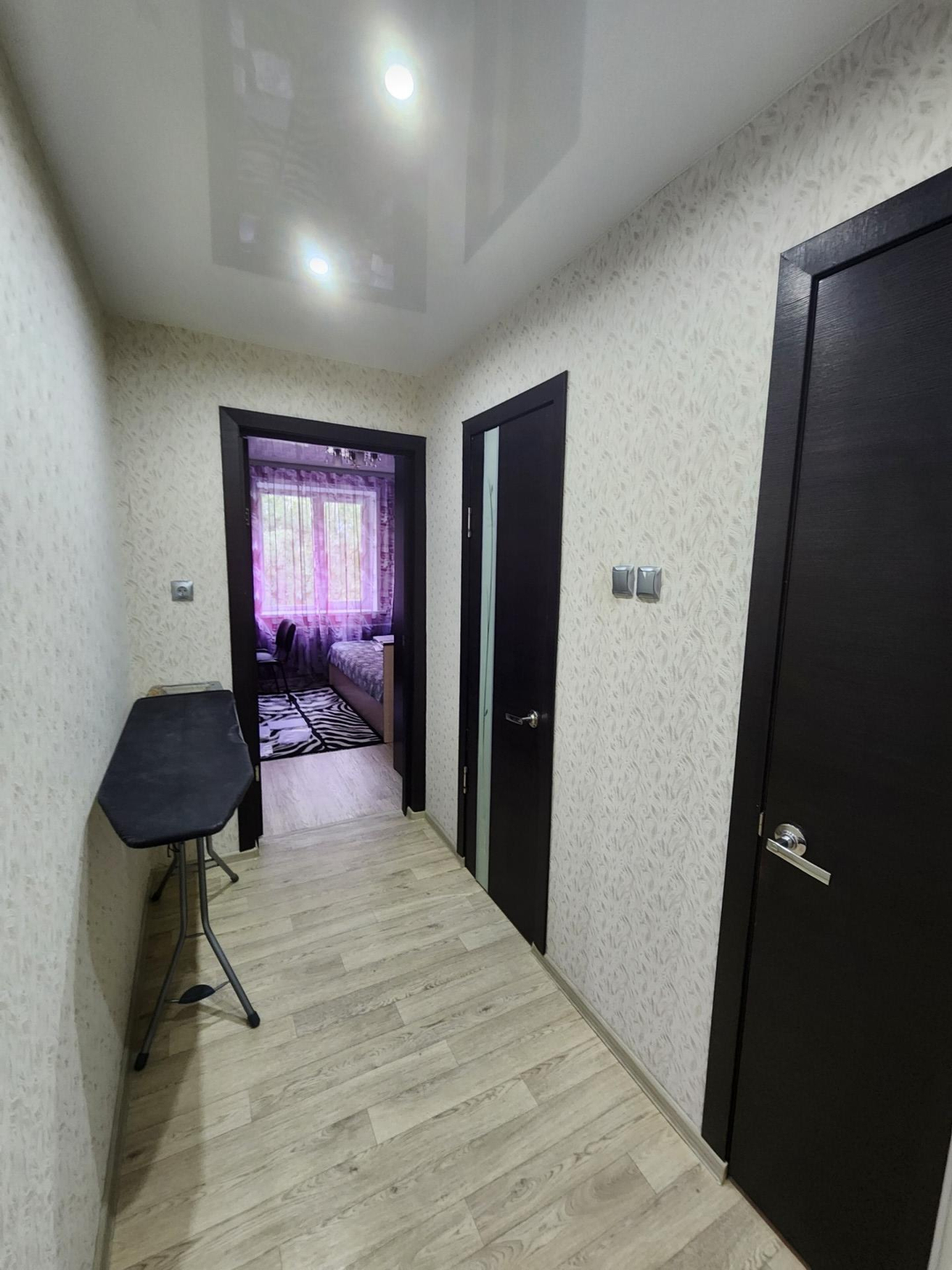 Дверь металлическая, стеклопакеты по всей квартире, санузел раздельный, радиаторы биметаллические, натяжные потолки везде. При ремонте было заменено всё: от окон до труб и радиаторов.
