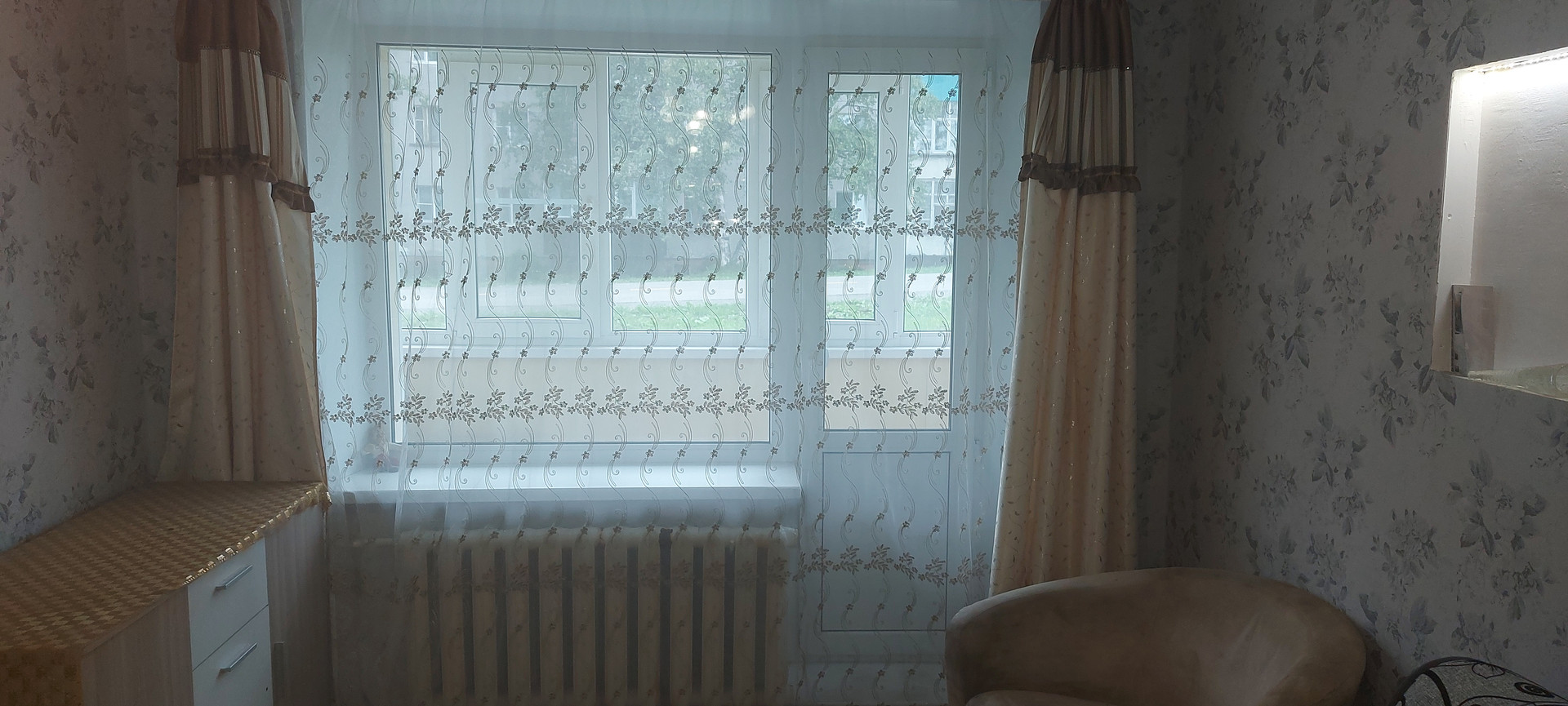 Окна и балкон пластиковые, сантехника и батареи в отличном состоянии.