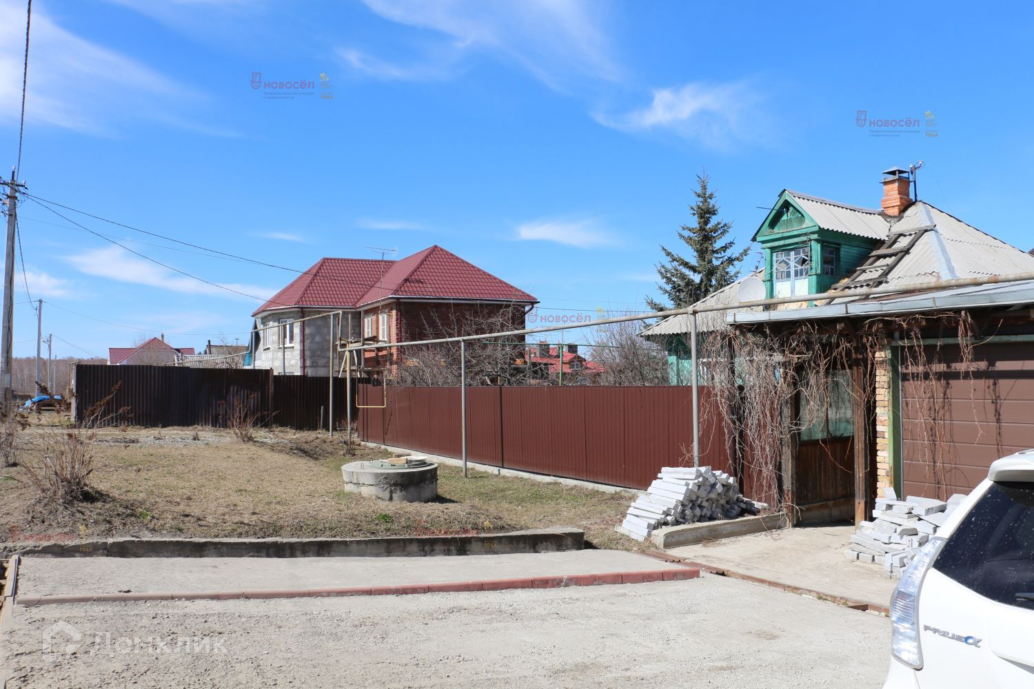 На участке добротная баня из бревна. Деревянный добрый дом из кругляка, с камином, со всеми коммуникациями (газ, вода, отопление, канализация) - можно его рассматривать как гостевой или дом для родителей, площадью 74 кв.м. Крытый гараж на две машины.