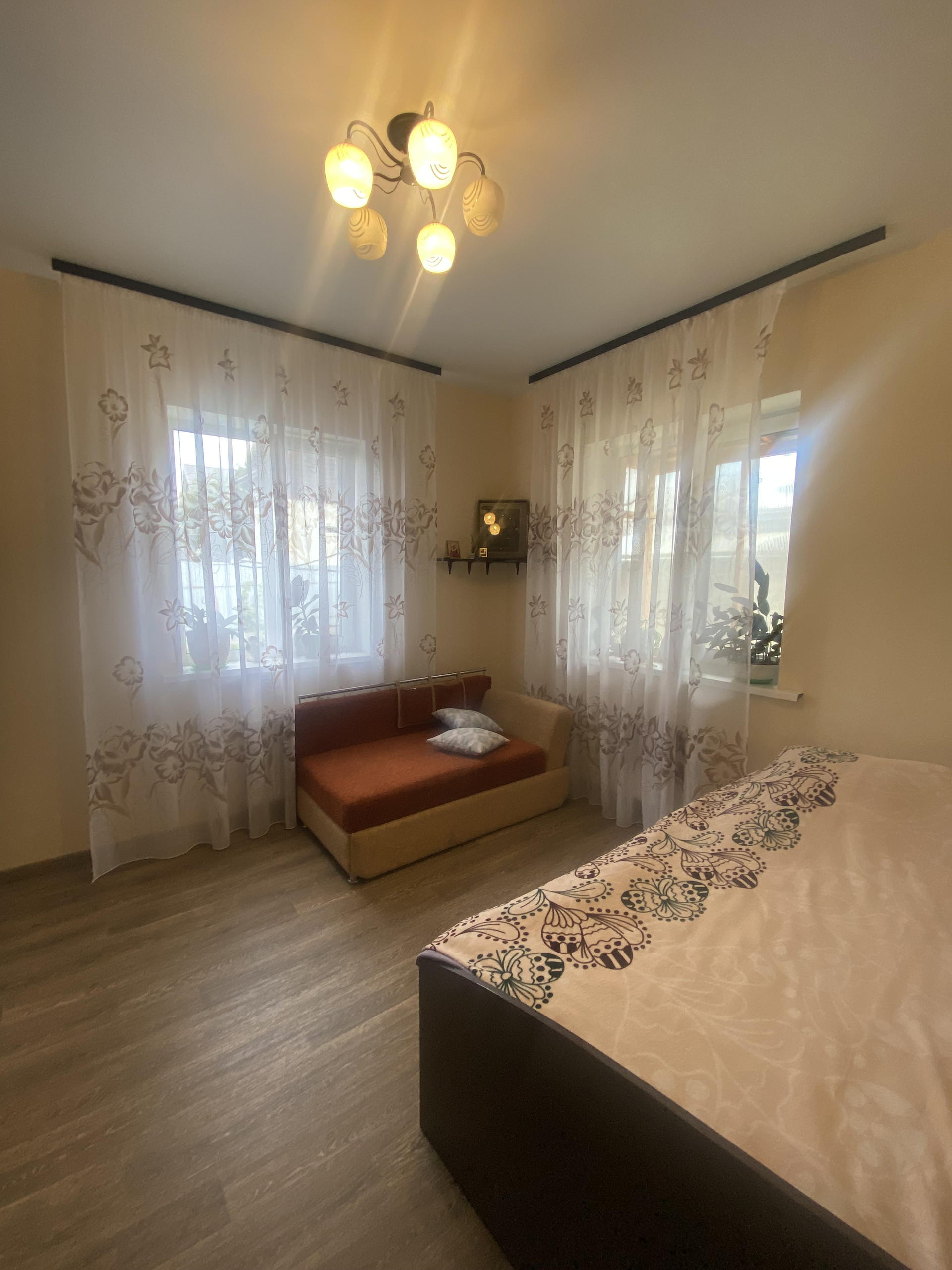 -ВТОРОЙ ДОМ 30 кв.метров+веранда (всего примерно 70 кв.м.) из бревна, полностью благоустроенный, со всеми коммуникациями: газ, вода, отопление, камин. Подойдет как дом для родителей или как гостевой.