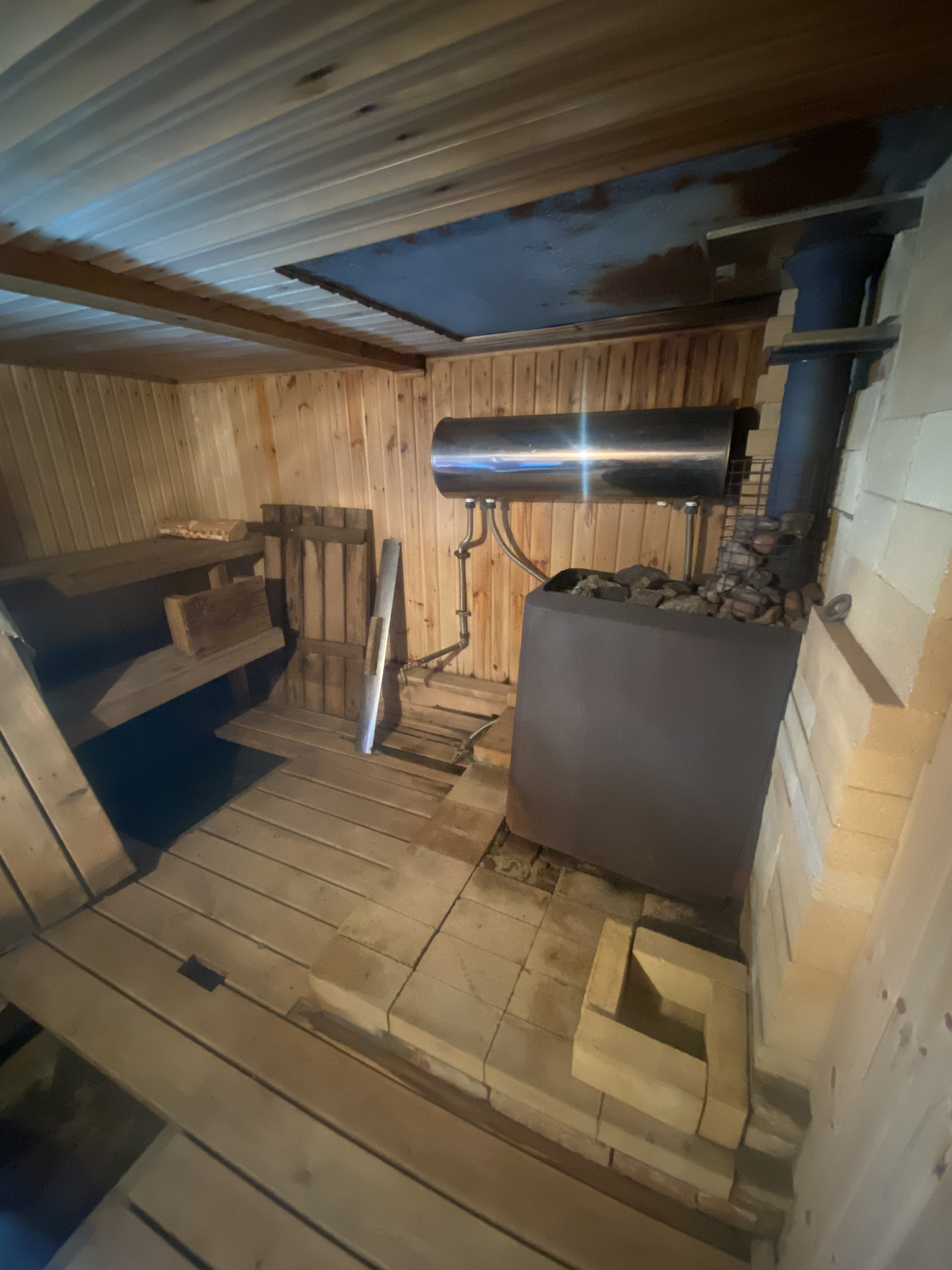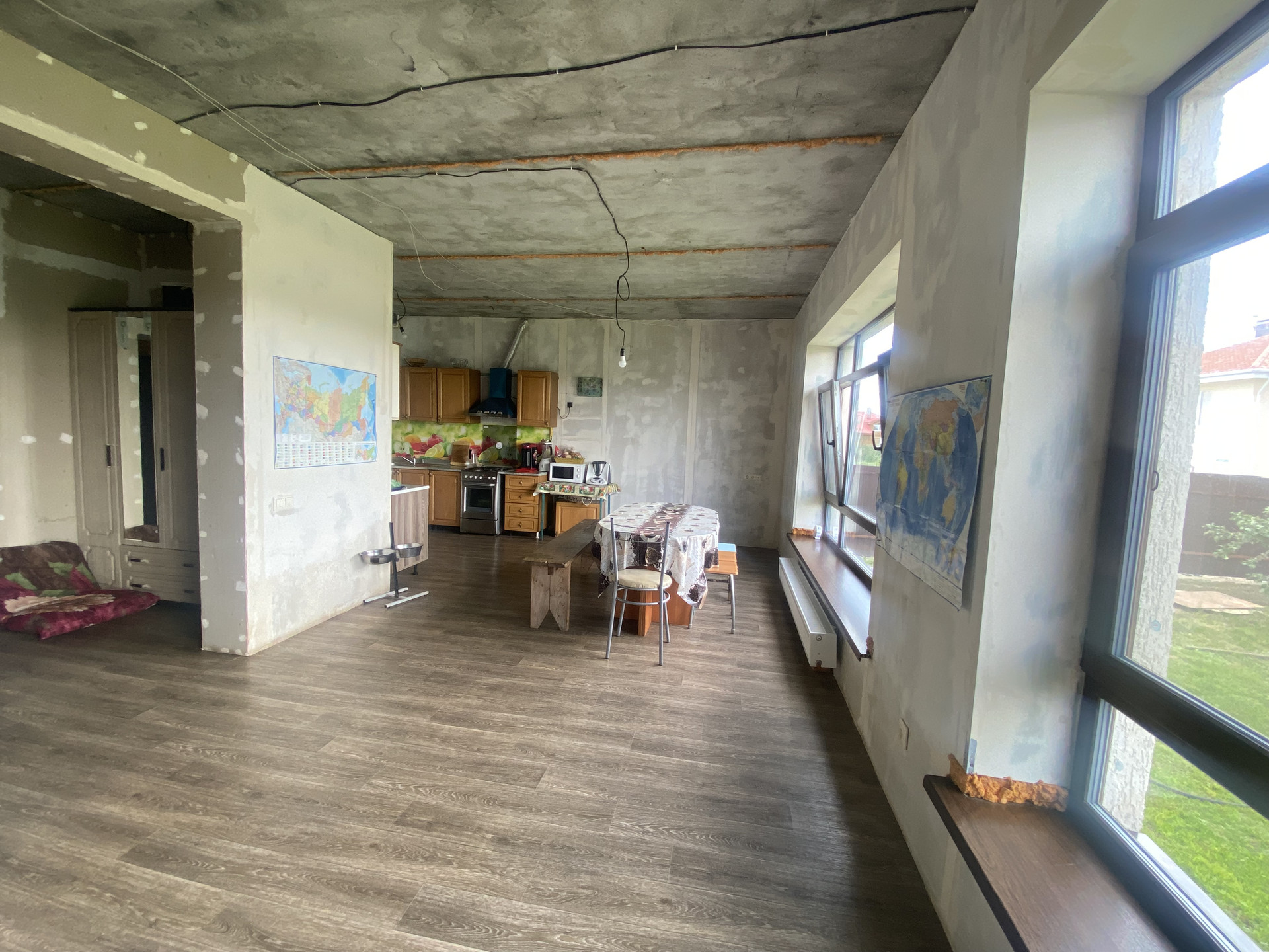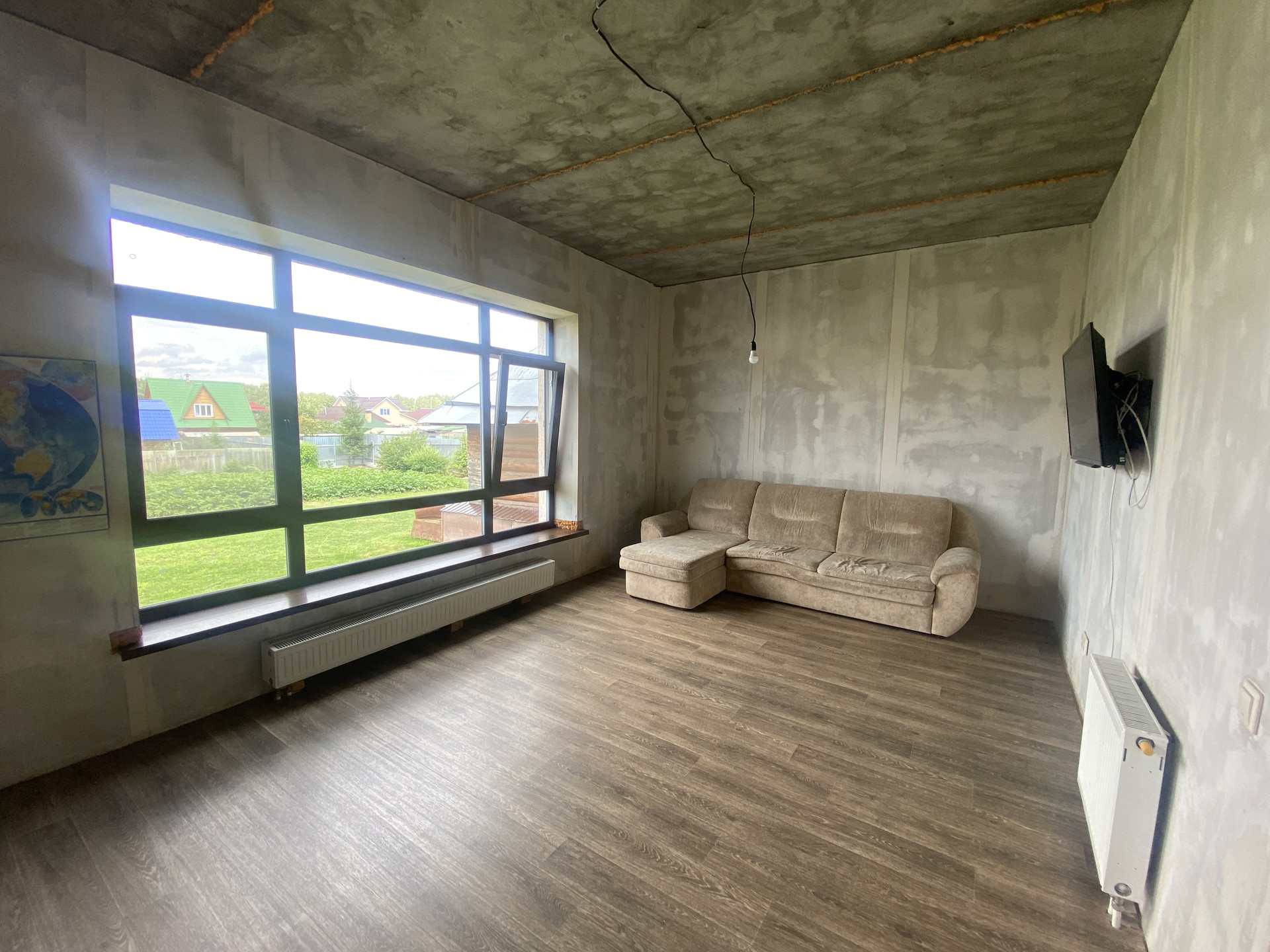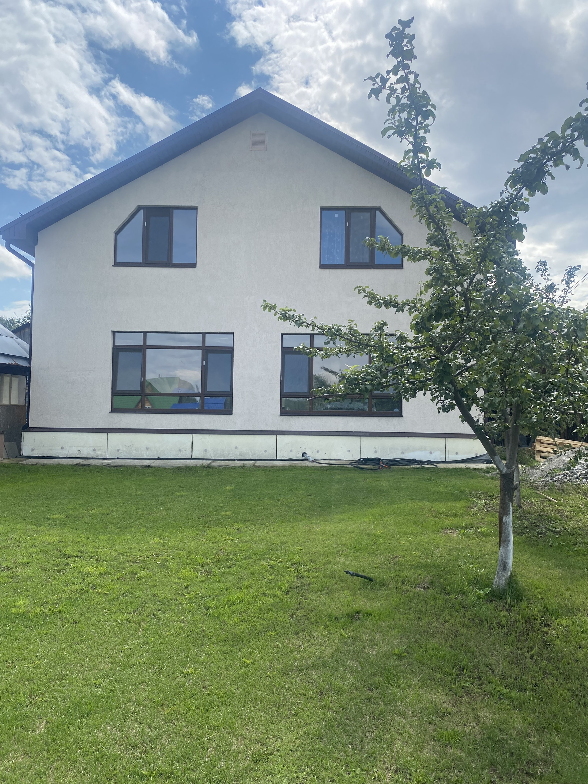 - Отделка под чистовую, осталось по своему вкусу наклеить обои, положить пол на втором этаже, натянуть потолки.