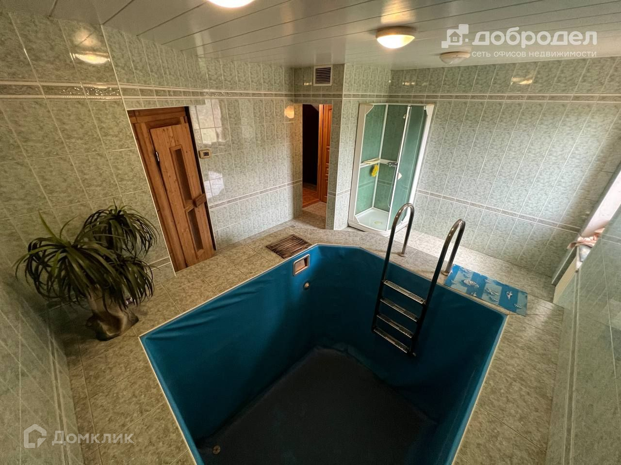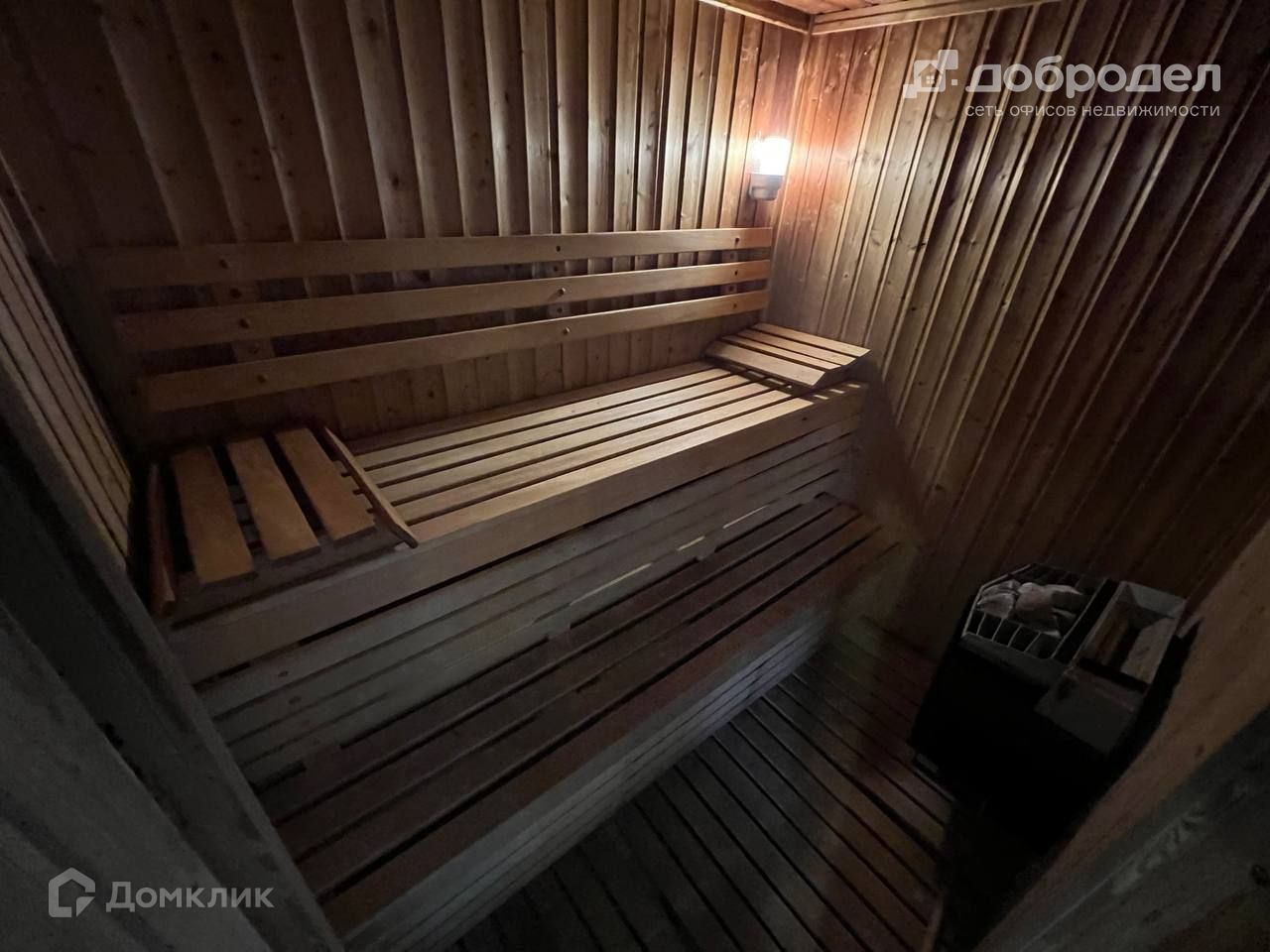 В доме большая гостиная с камином, кухня, 3 спальни, 2 санузла, бассейн, сауна, котельная, три тех. помещения, две лоджии и летняя кухня, отапливаемый гараж на 2 машины.
