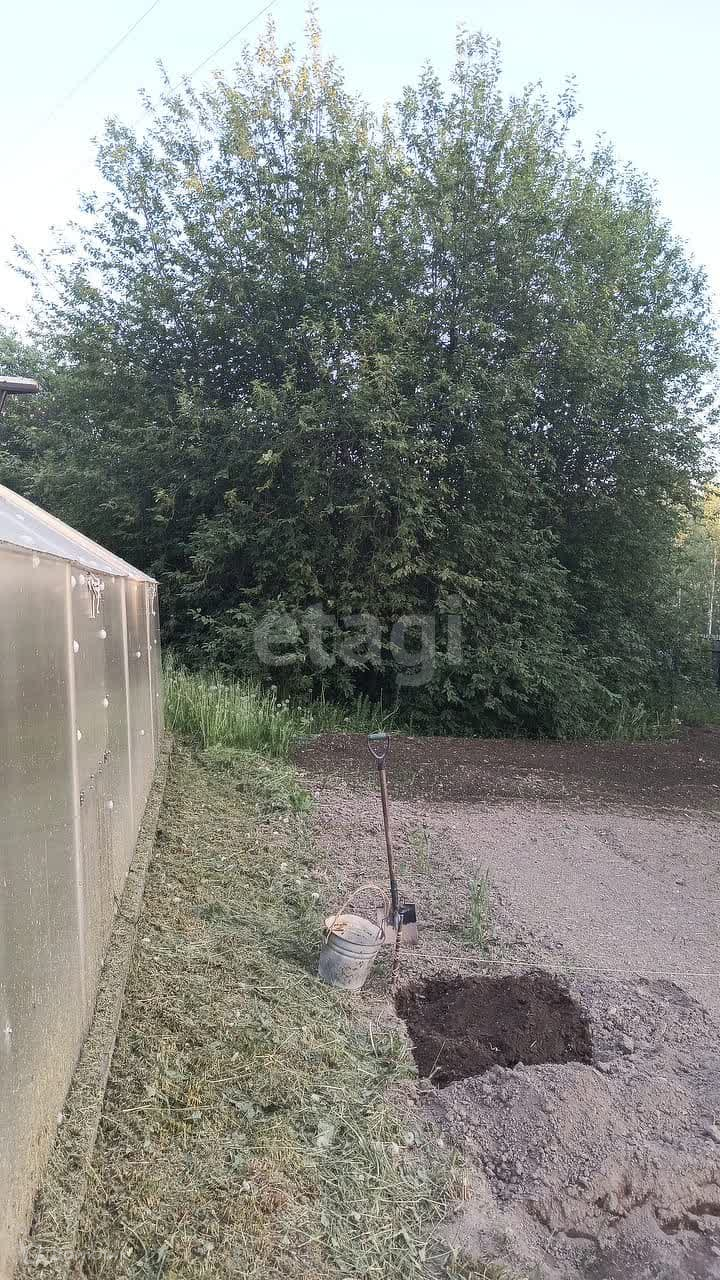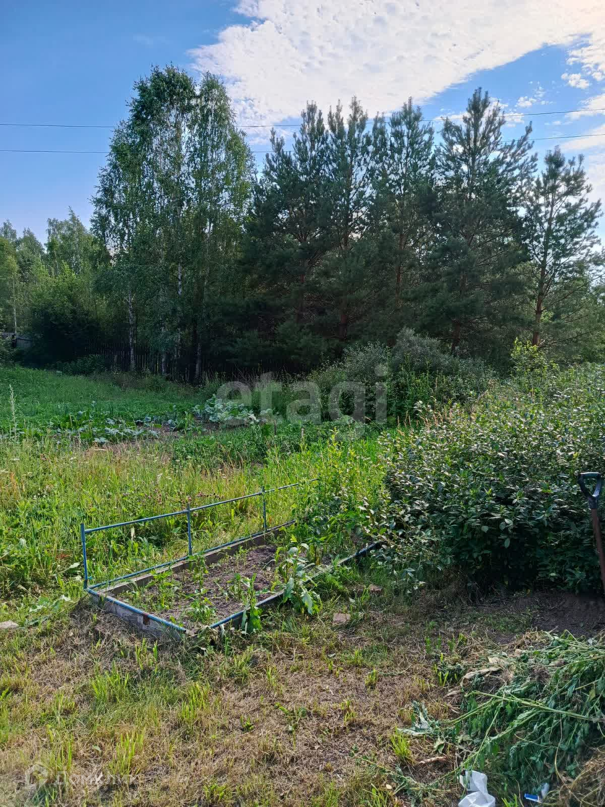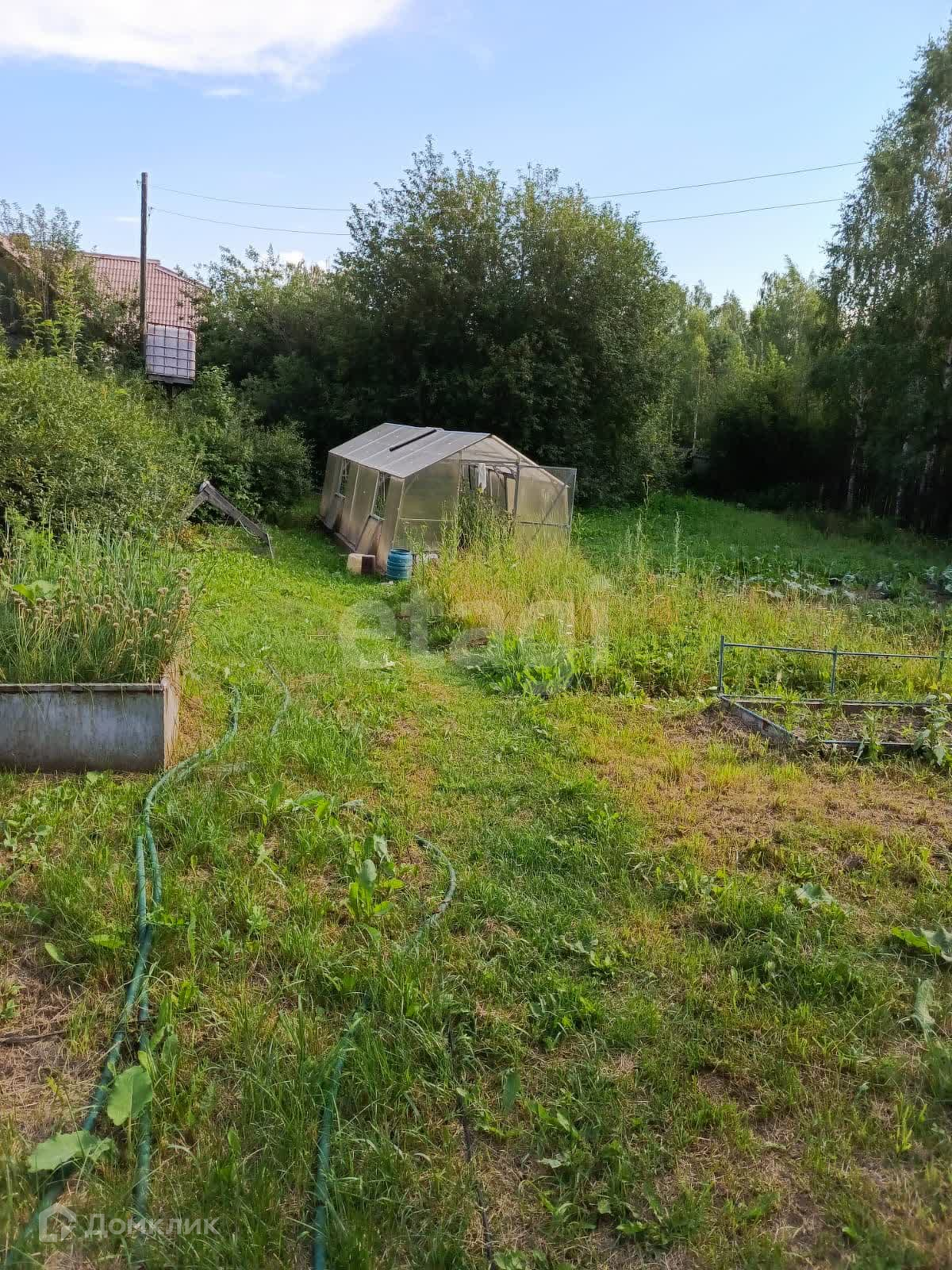 Участок разработан: грядки для посадок, кусты вишни, смородины, жимолость, жасмин; плодовые деревья яблони и груши, черемуха, лиственница, елка. Установлена теплица 3х6 метров на фундаменте из лиственницы.