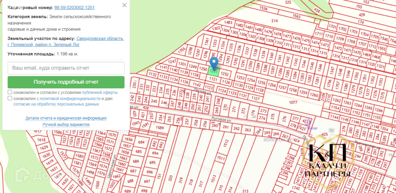 Кадастровый номер участка: 66:59:0203002:1251