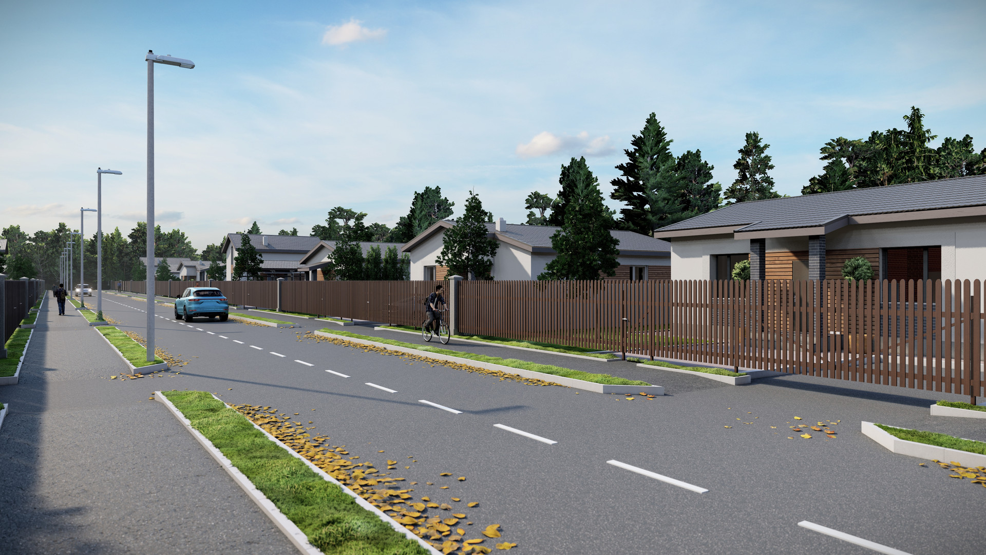 Спортивная зона, детские площадки, прогулочные зоны, велосипеды, парковая зона 3 гектара, магазин, регулярные мероприятия и мастер-классы.
