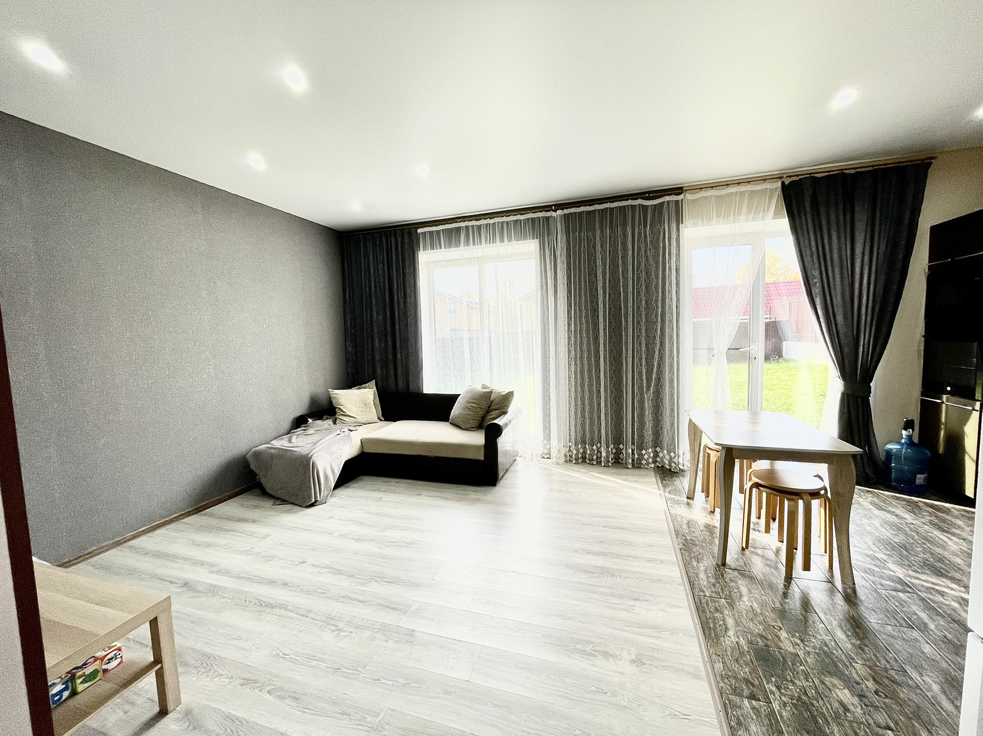 Дом строили для себя, оставляем мебель и технику, при ремонте продумывали все детали удобства в эксплуатации, ремонт полностью сделан на 1 этаже, на втором этаже- в спальне. Уже все подготовлено для косметического ремонта второго этажа.