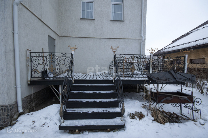 Кованая лестница соединяет между собой три этажа.