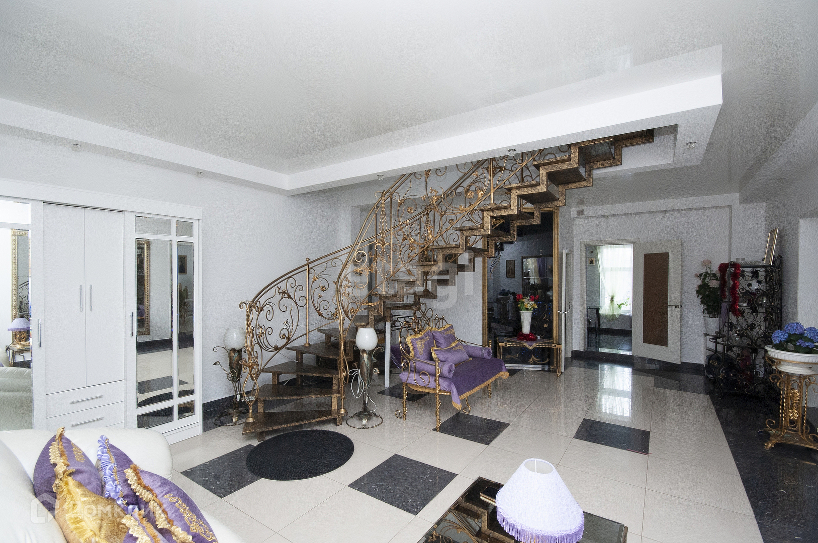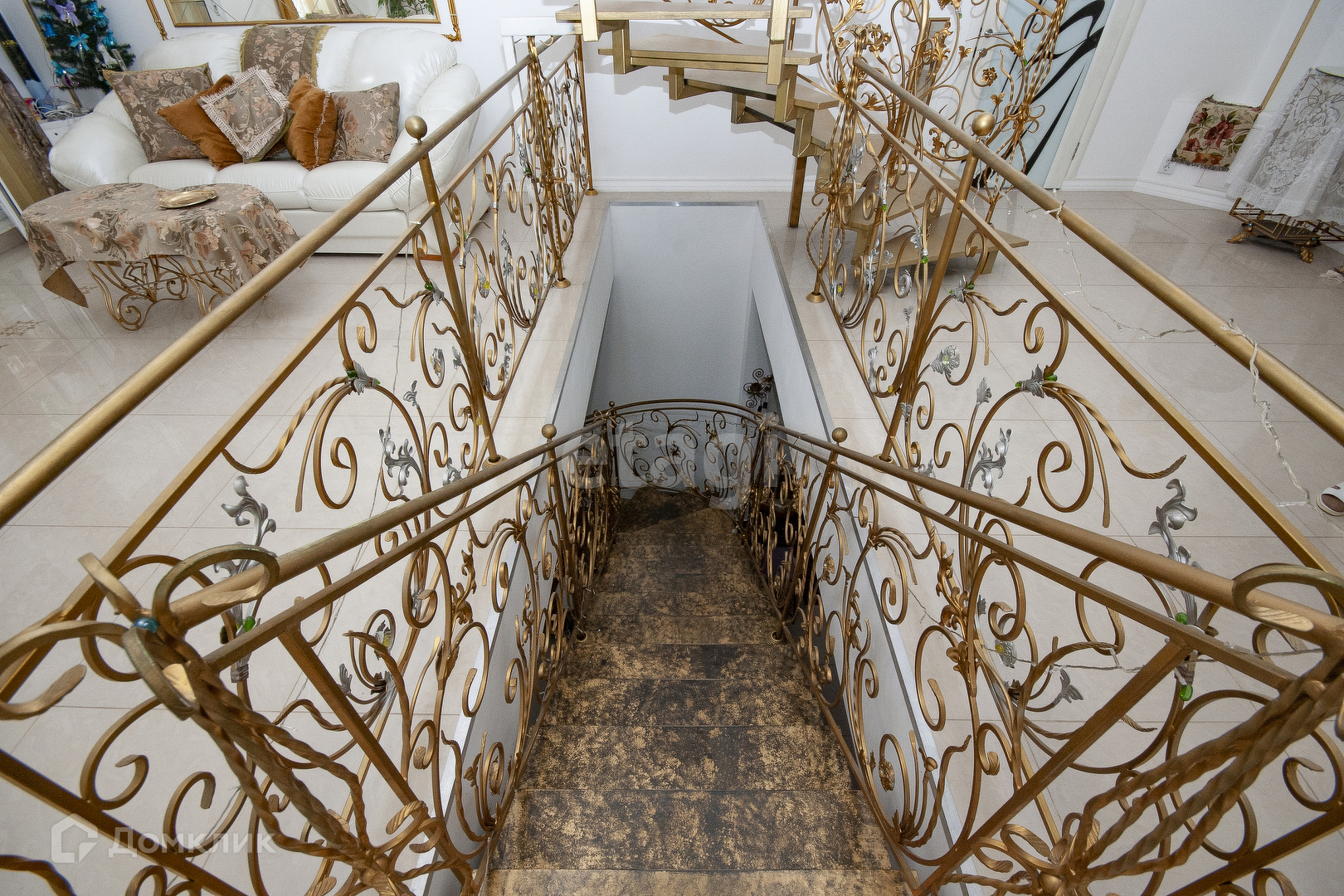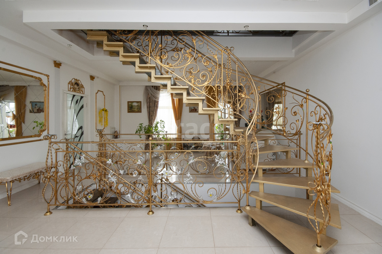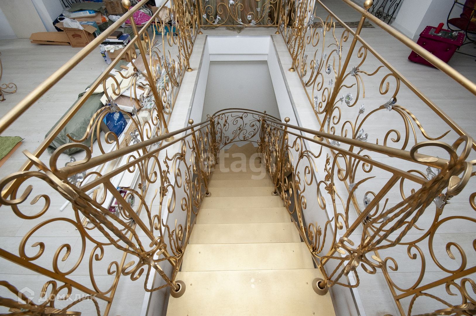 Кованая лестница соединяет между собой три этажа.