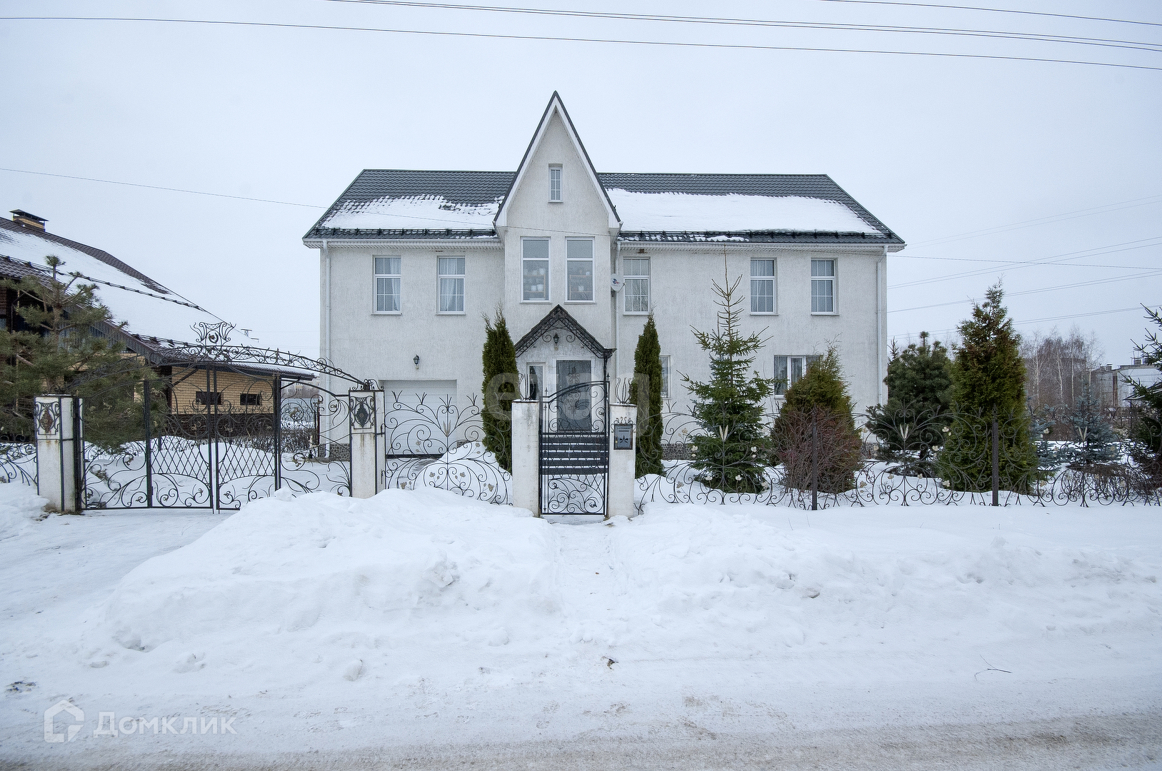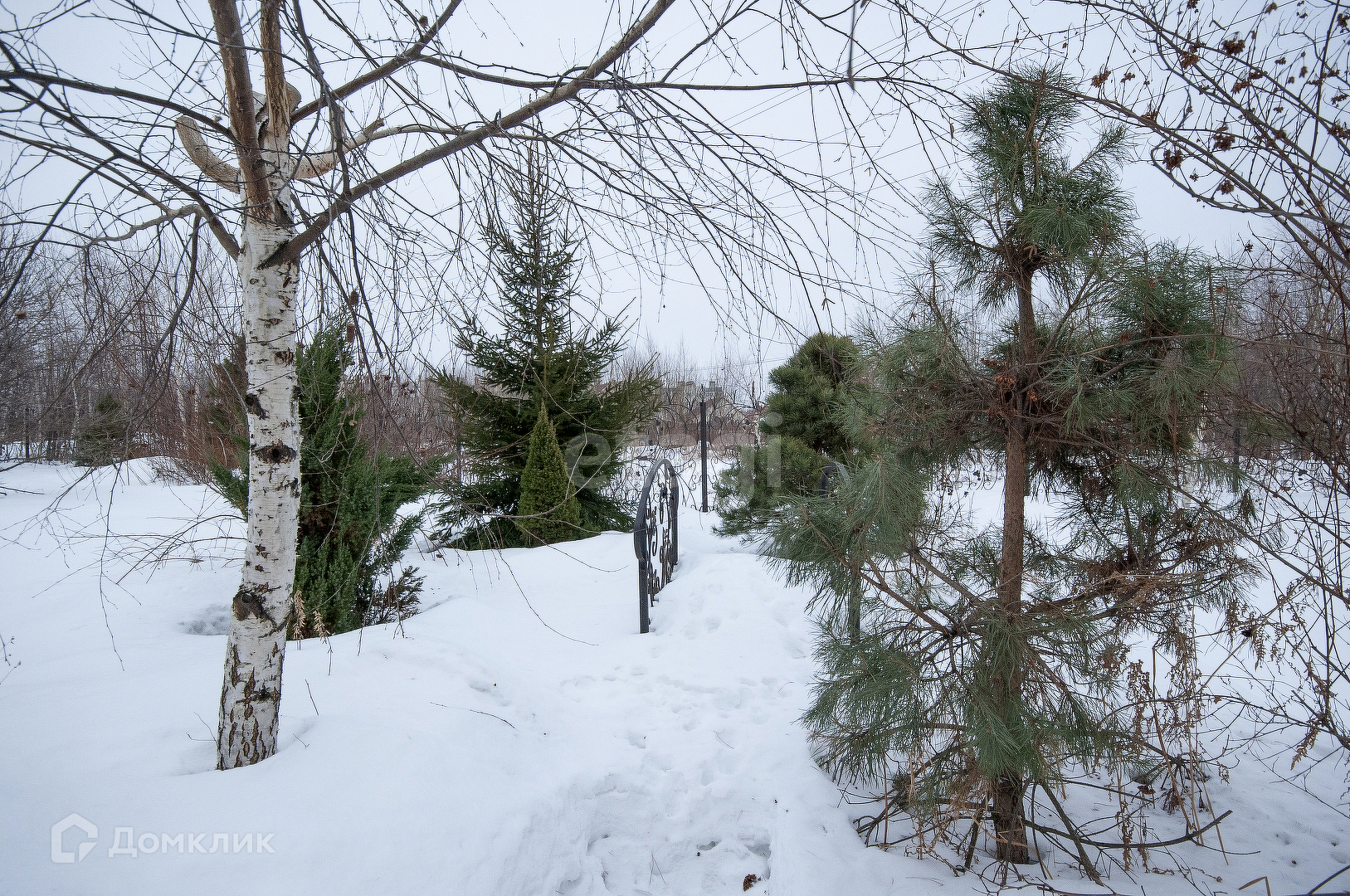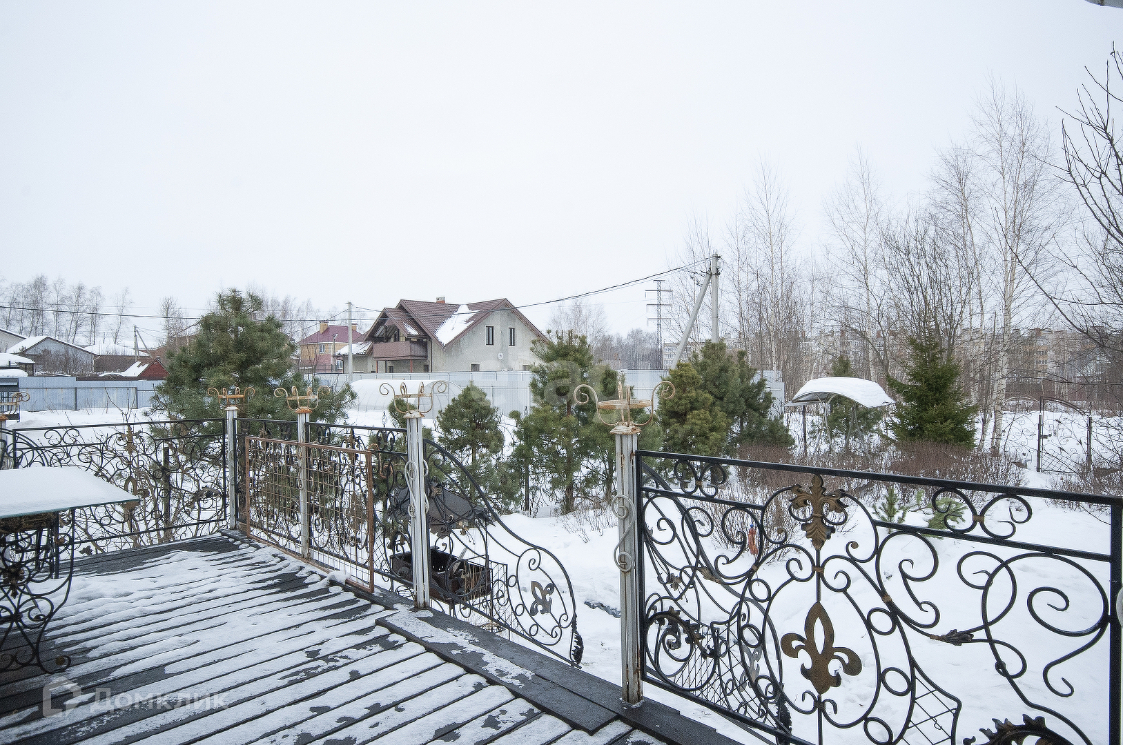 По периметру кованый забор с калиткой и воротами.
