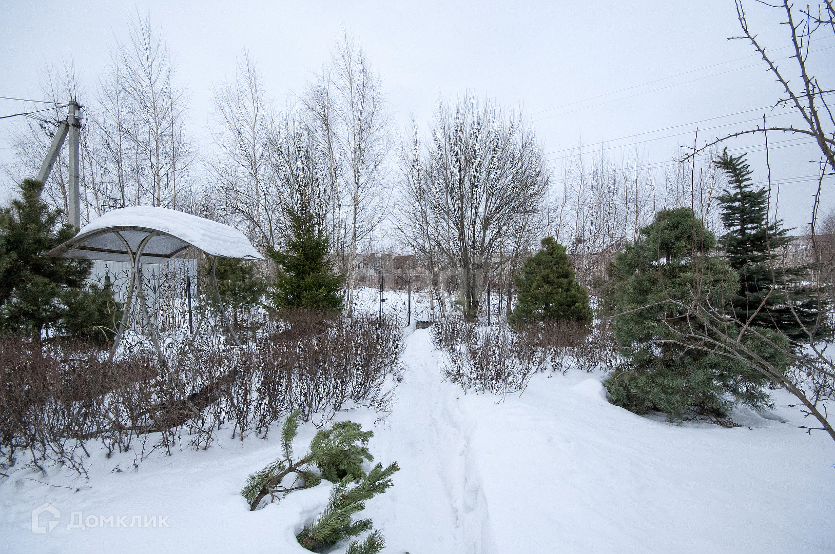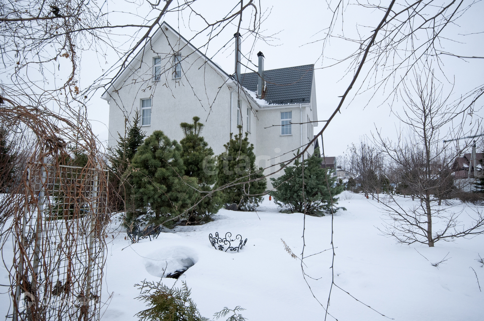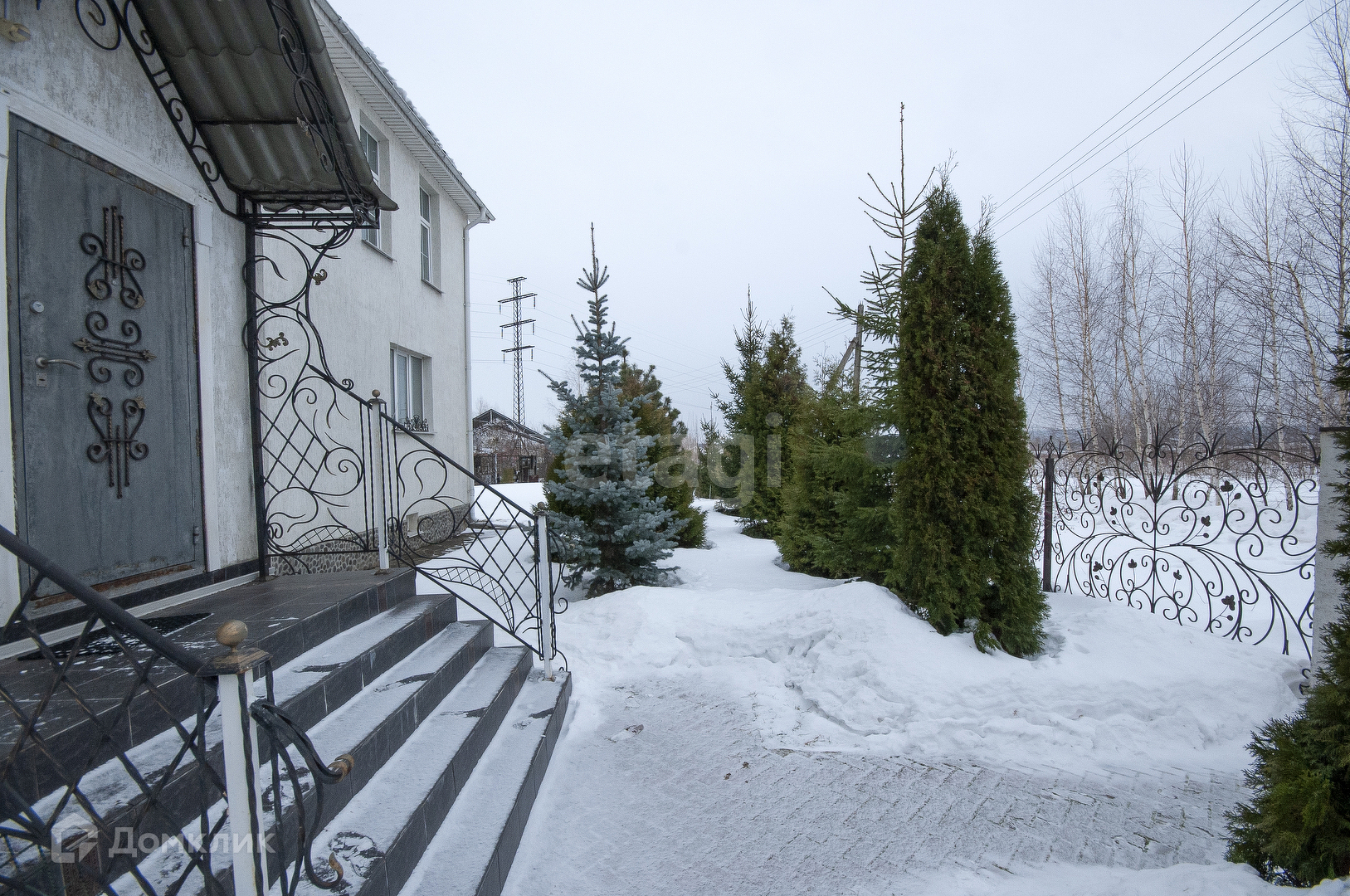 По периметру кованый забор с калиткой и воротами.