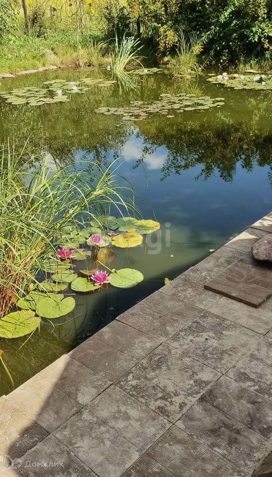 На участке беседка,пруд с рыбой,бассейн, много посадок винограда, теплица, выполнено благоустройство участка.