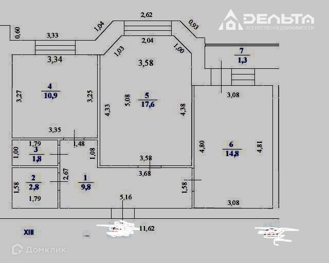 Общая площадь 57.7 м2