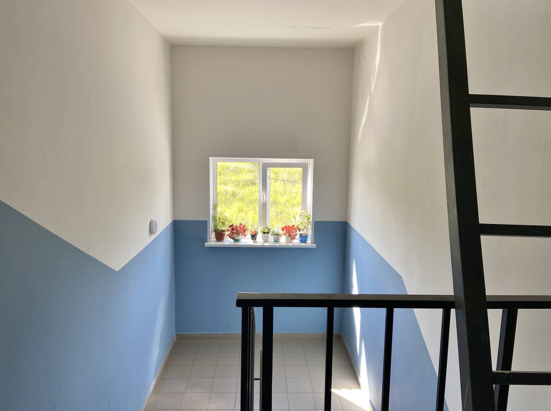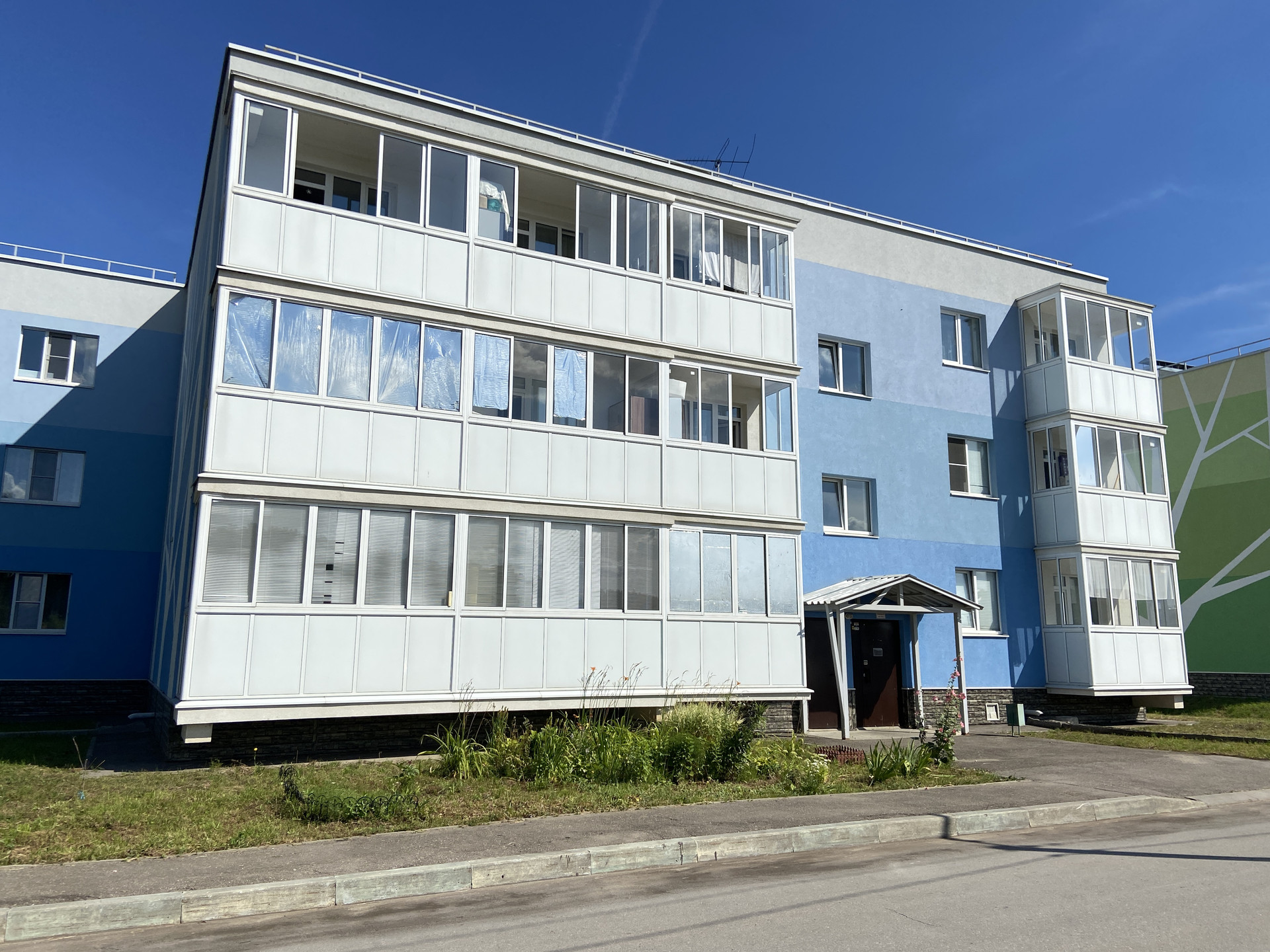 Ухоженный подъезд, во дворе детская площадка, много зелени, большая парковка.