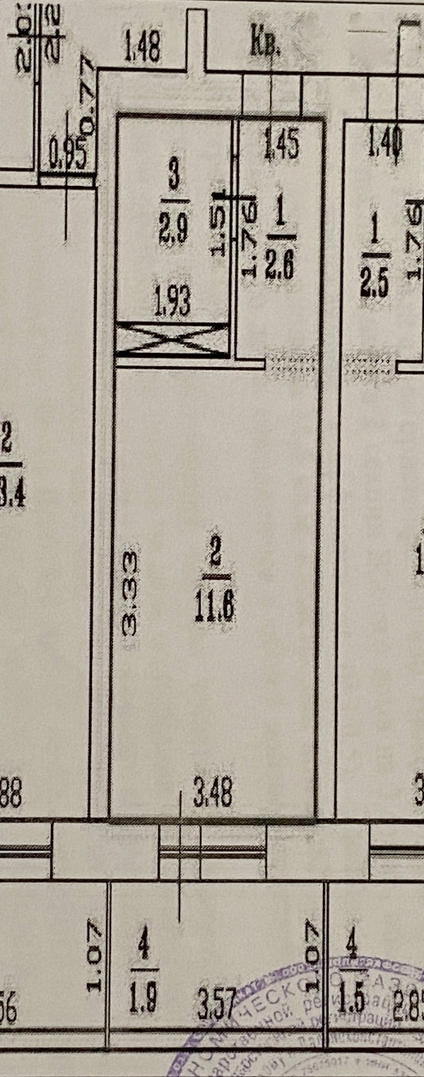 Площадь кухни 3 м2