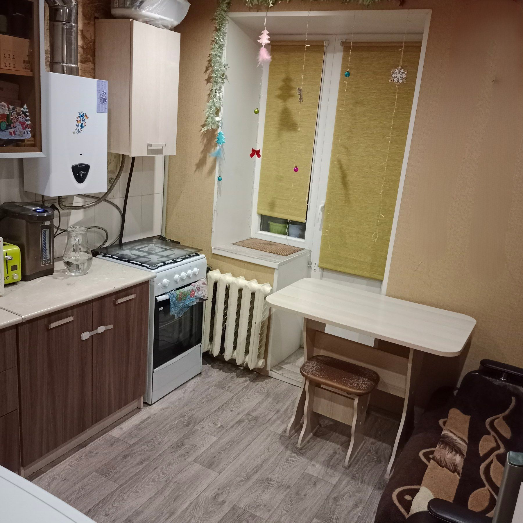 В квартире выполнен качественный ремонт - пластиковые окна, натяжные потолки, заменена вся электропроводка, установлена современная колонка, санузел в кафеле, обновлена косметика - обои, линолеум.