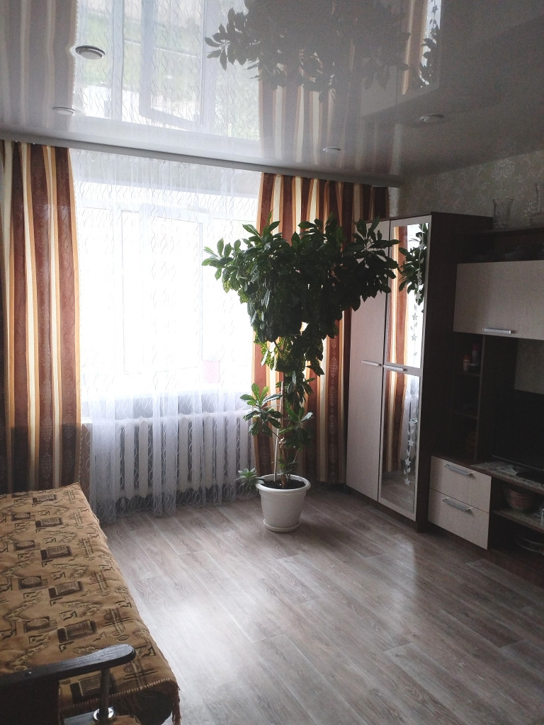 Квартира расположена на 4-ом этаже пятиэтажного кирпичного дома. Площадь комнаты составляет 21 кв.м., кухня - 7,3 кв.м., из кухни выход на лоджию, санузел - совмещенный.Во всей квартире выполнен  ремонт: установлены пластиковые стеклопакеты, установлены приборы индивидуального учета воды и электроэнергии.Квартира светлая, не угловая. 1 взрослый собственник. В стоимость квартиры входит кухонный гарнитур. По договоренности есть возможность оставить стенку в зале и шкаф в коридоре.