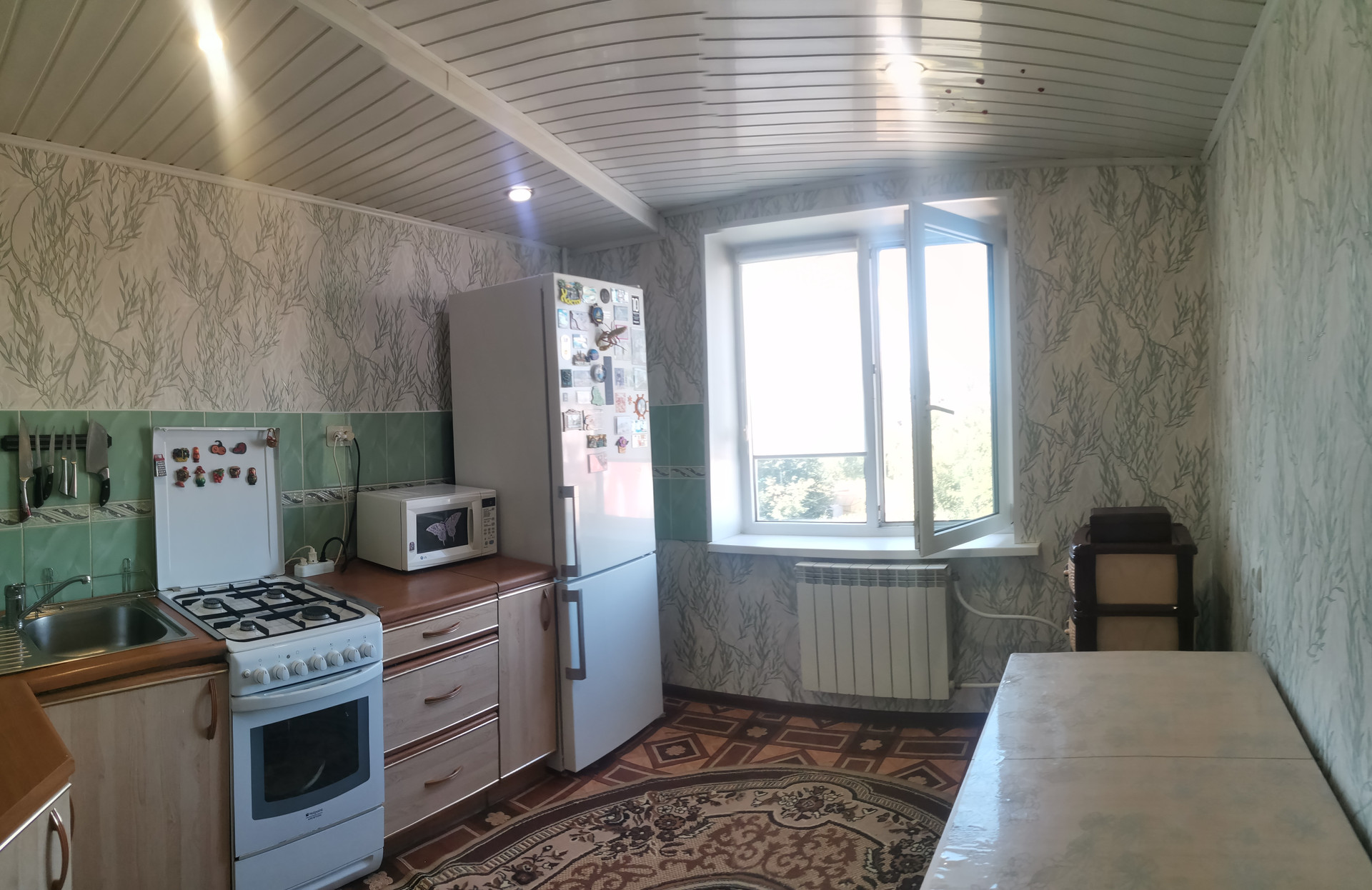 2. Большая уютная кухня (10,7 кв. м) с окном, выходящим в тихий зеленый двор.