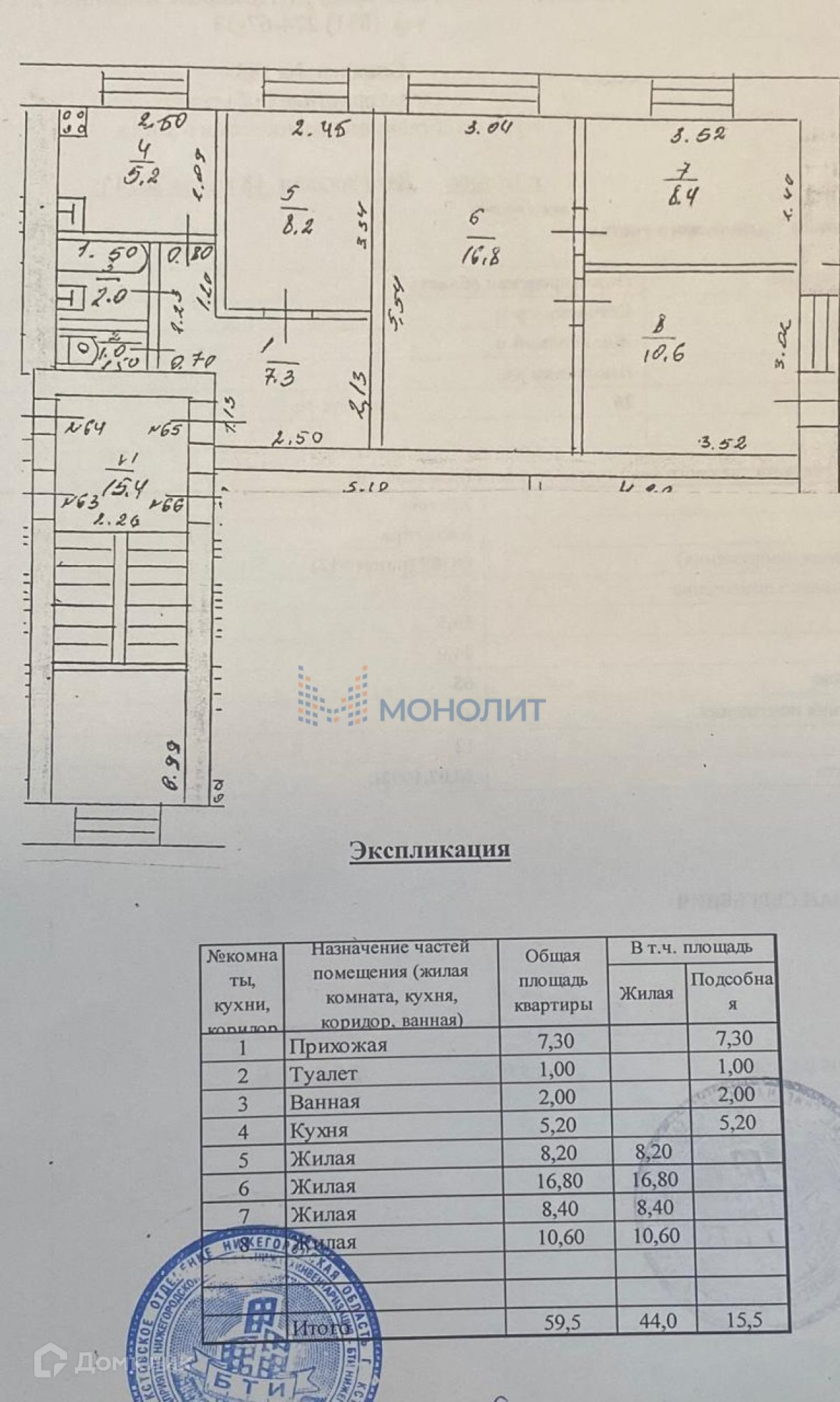 Общая площадь 59.5 м2