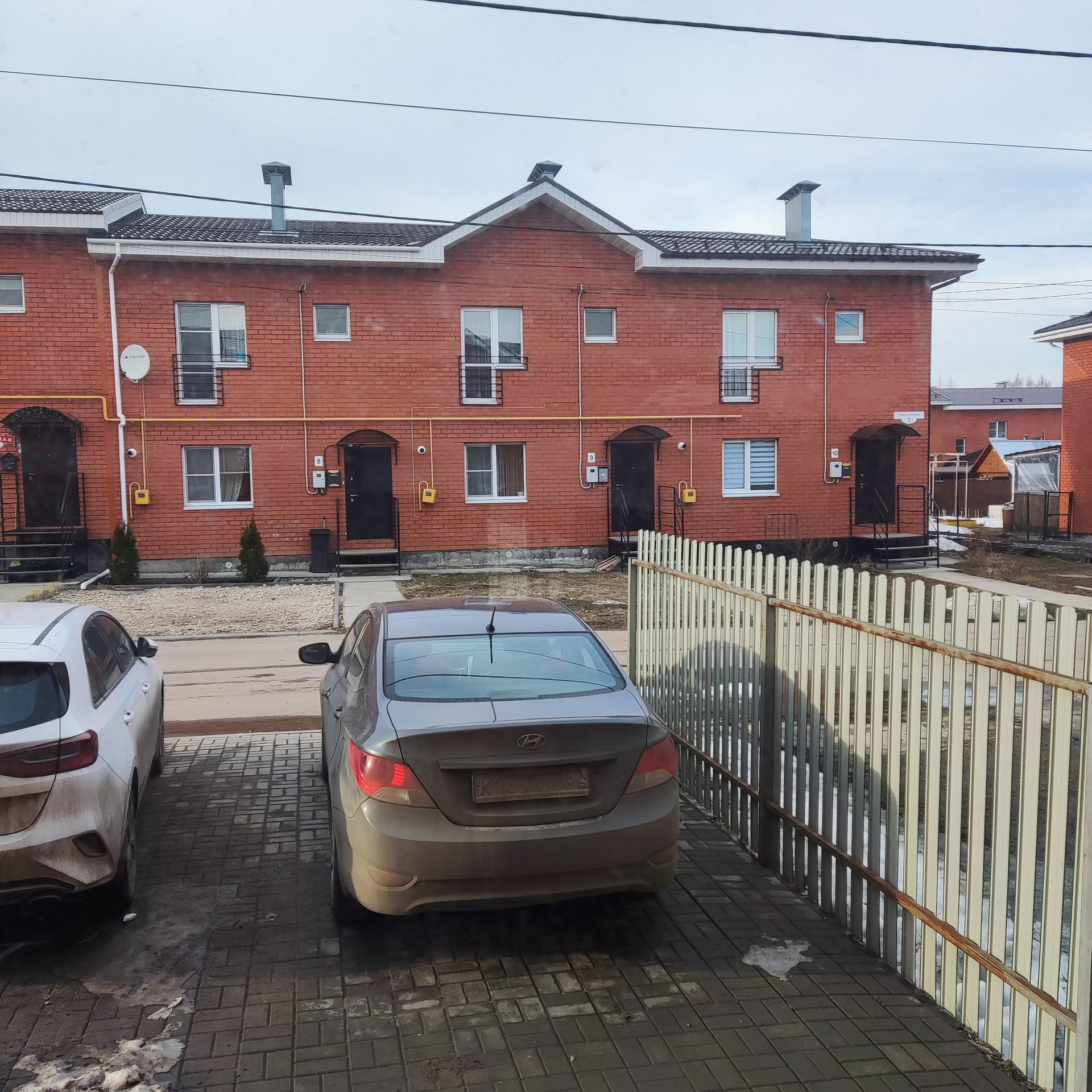 На парковке перед домом положена брусчатка. На парковке свободно умещаются 2 автомобиля. Автомобили на парковке в летнее время остаются в тени.