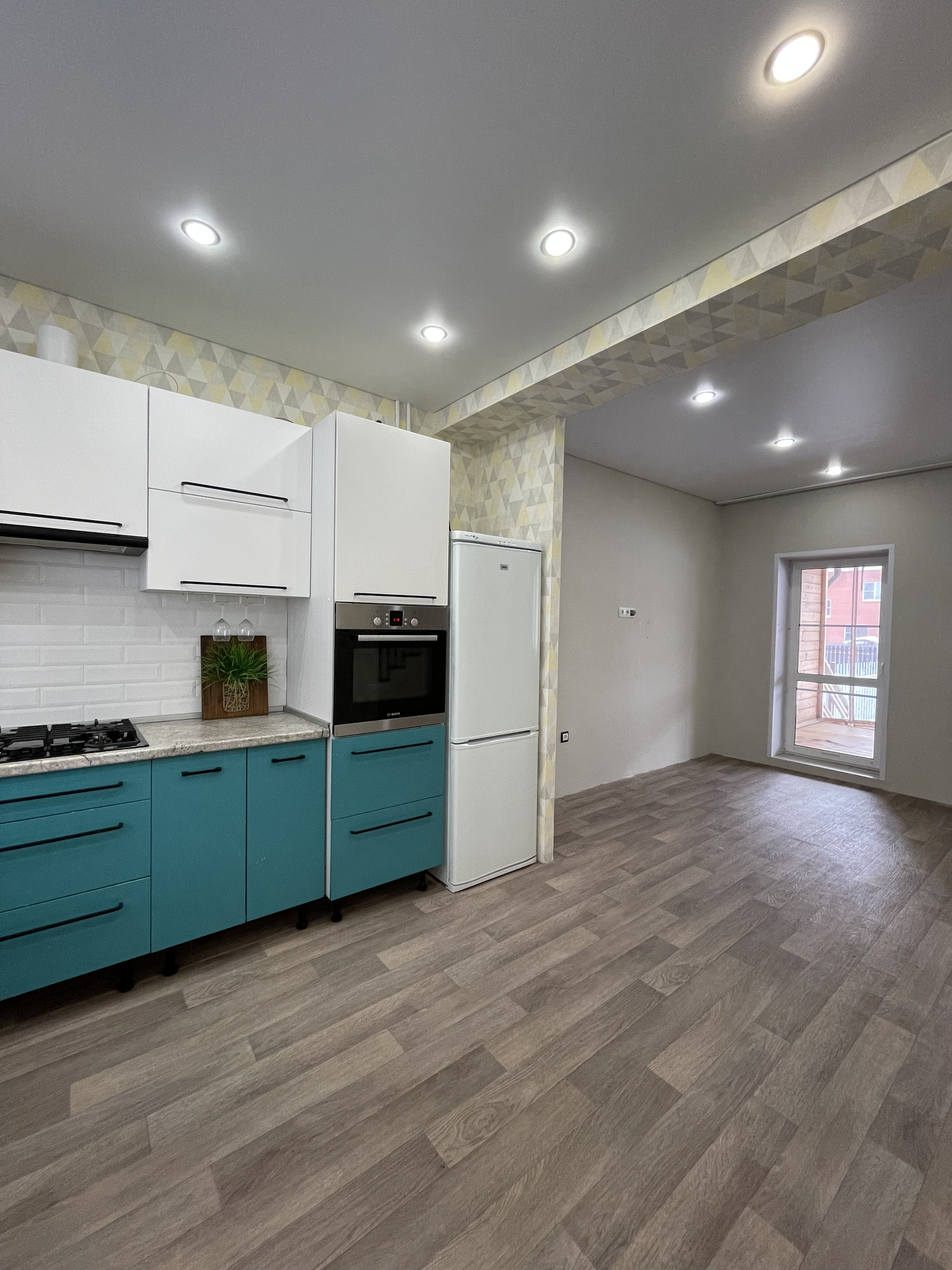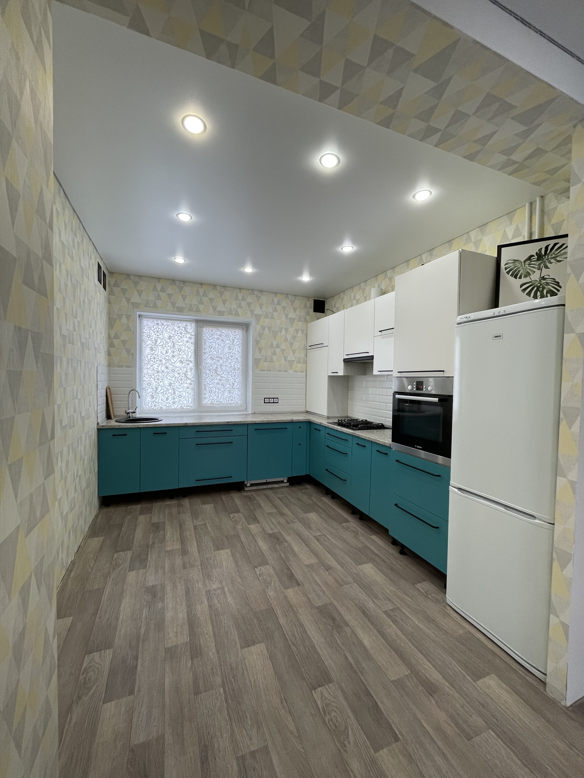 Оставляем всю кухонную бытовую технику, варочная поверхность газовая, духовой шкаф электрический, холодильник, посудомоечная машина, а так же стиральную машину и два кондиционера в каждой спальне.