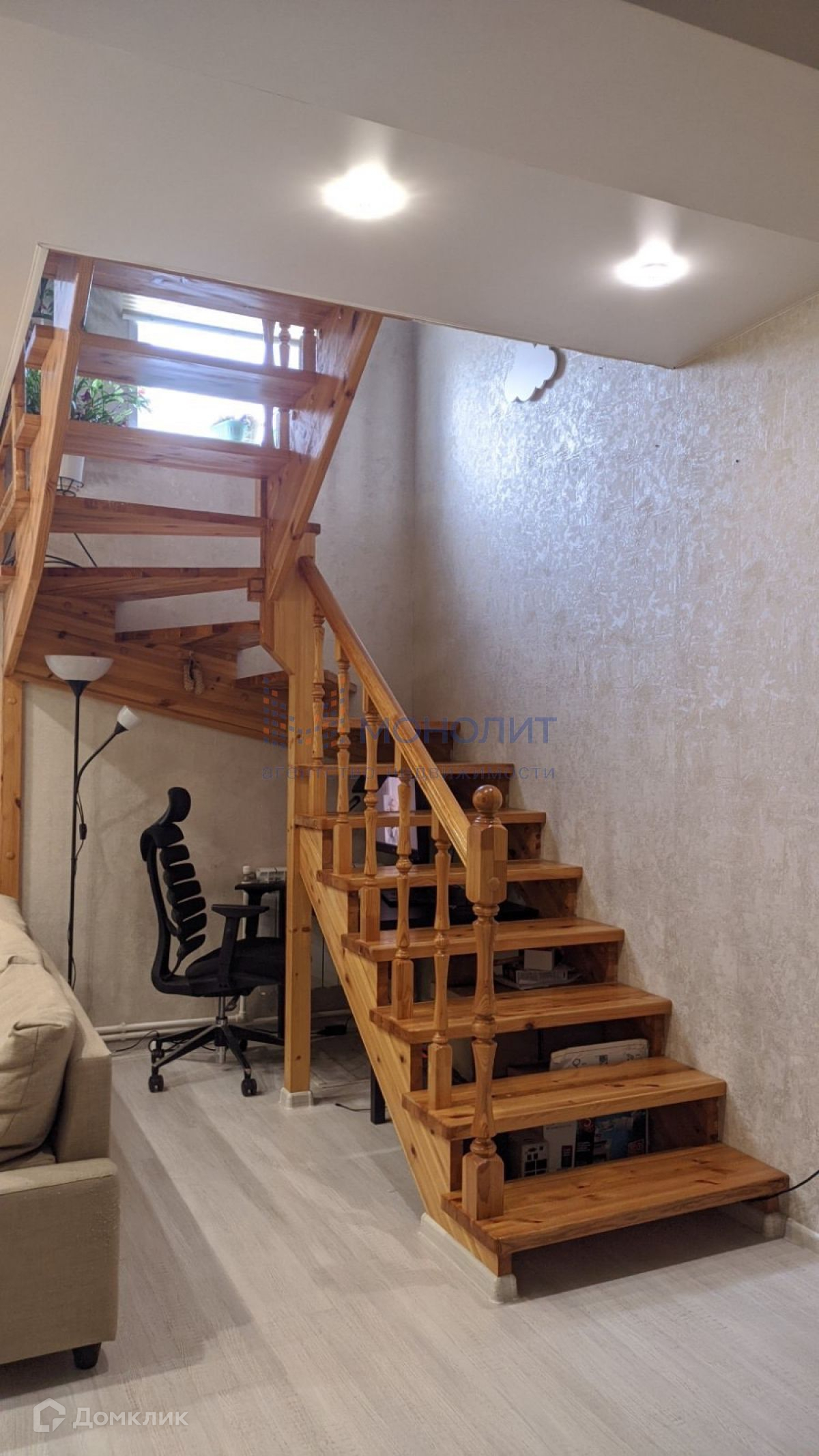 - Лестница-деревянная, развёрнутая таким образом, чтобы в прихожей убралась полноценная система хранения.