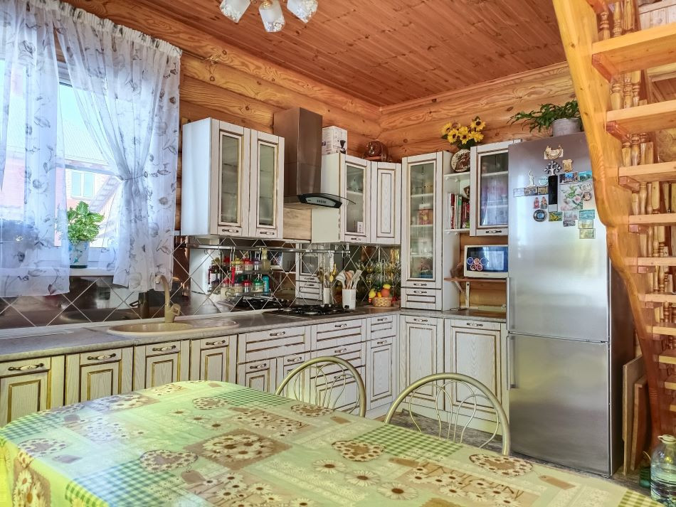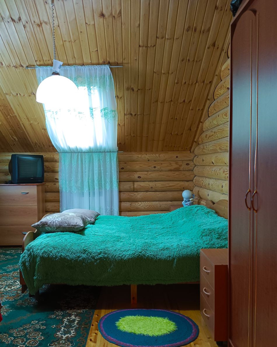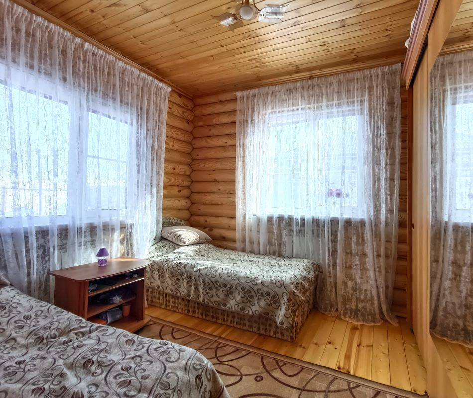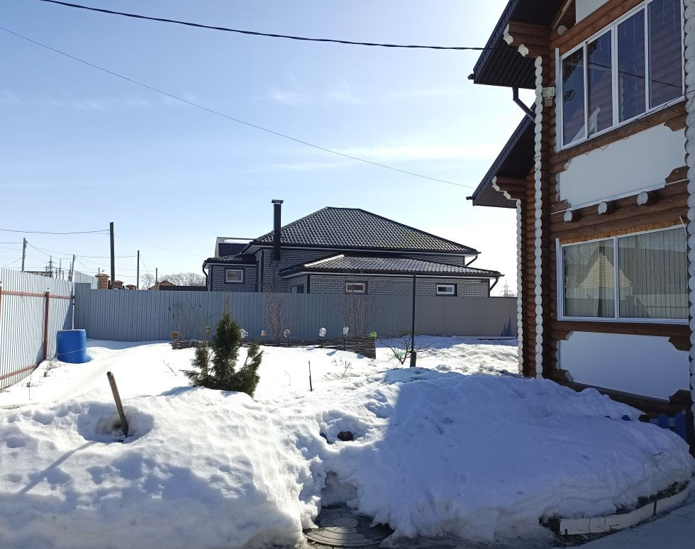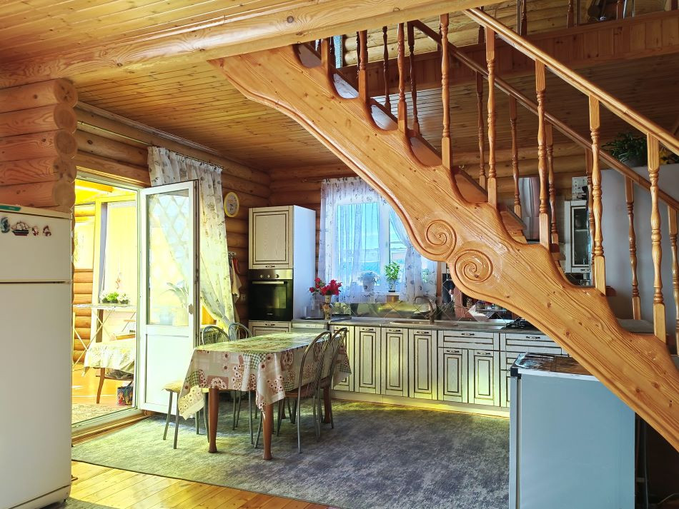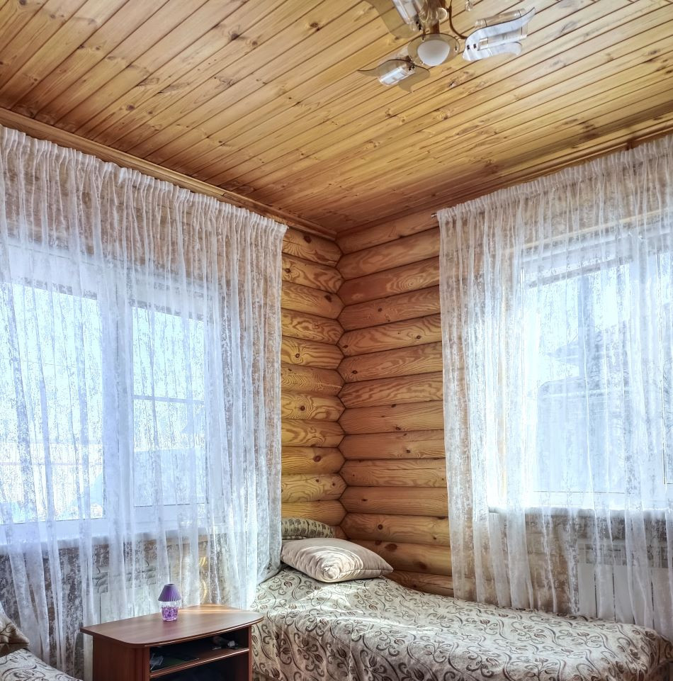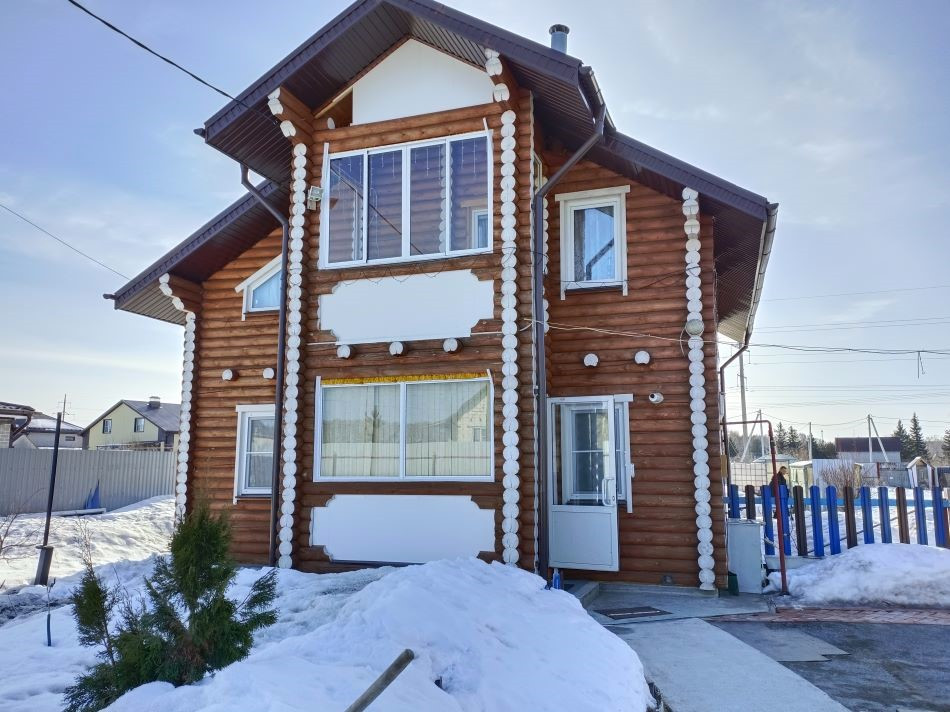 ПОСТРОЕН- фундамент: бетонный ленточный, основное здание— оцилиндрованное бревно одинакового диаметра. Бревно прошло все циклы обработки и сушки. Перекрытия деревянные, также из бревна. Крыша мансардного типа, утеплена, покрыта метало черепицей.
