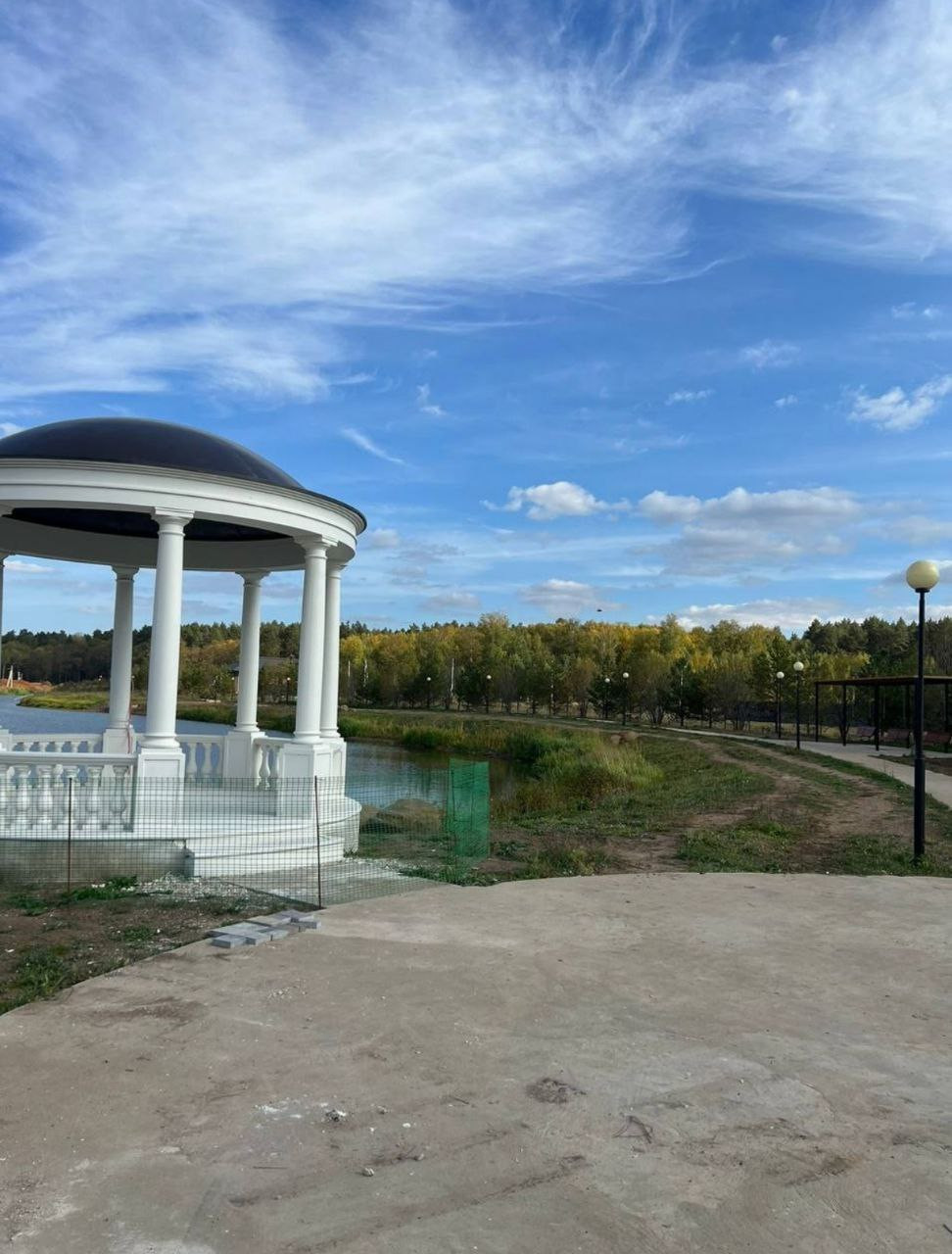 * Обустроенная набережная с фонтаном