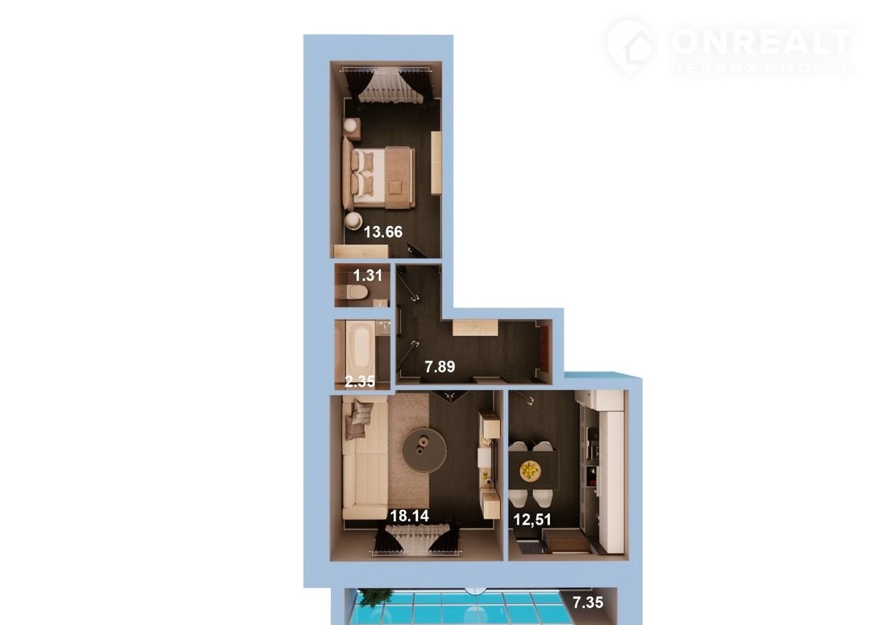 Общая площадь 59.6 м2