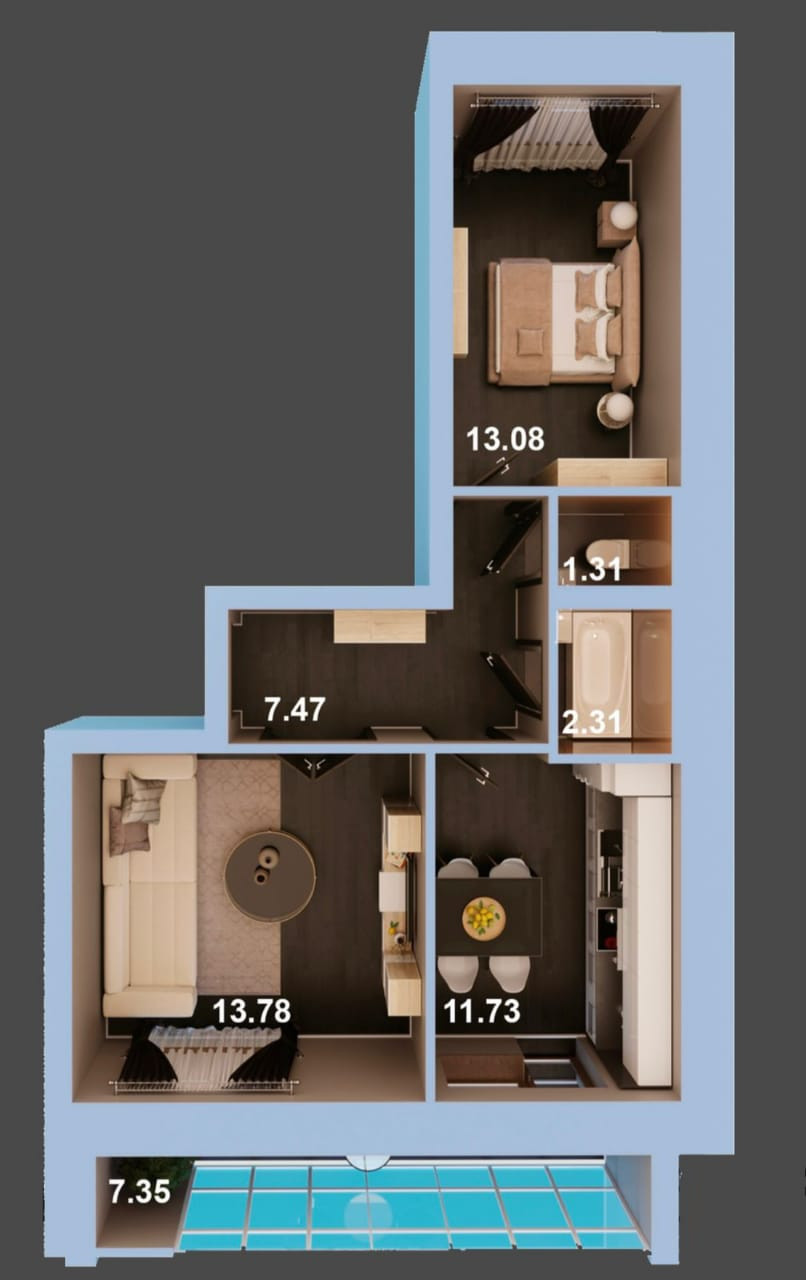Жилая площадь 26.86 м2