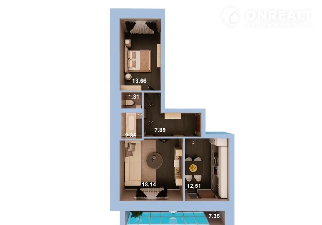 Общая площадь 57 м2