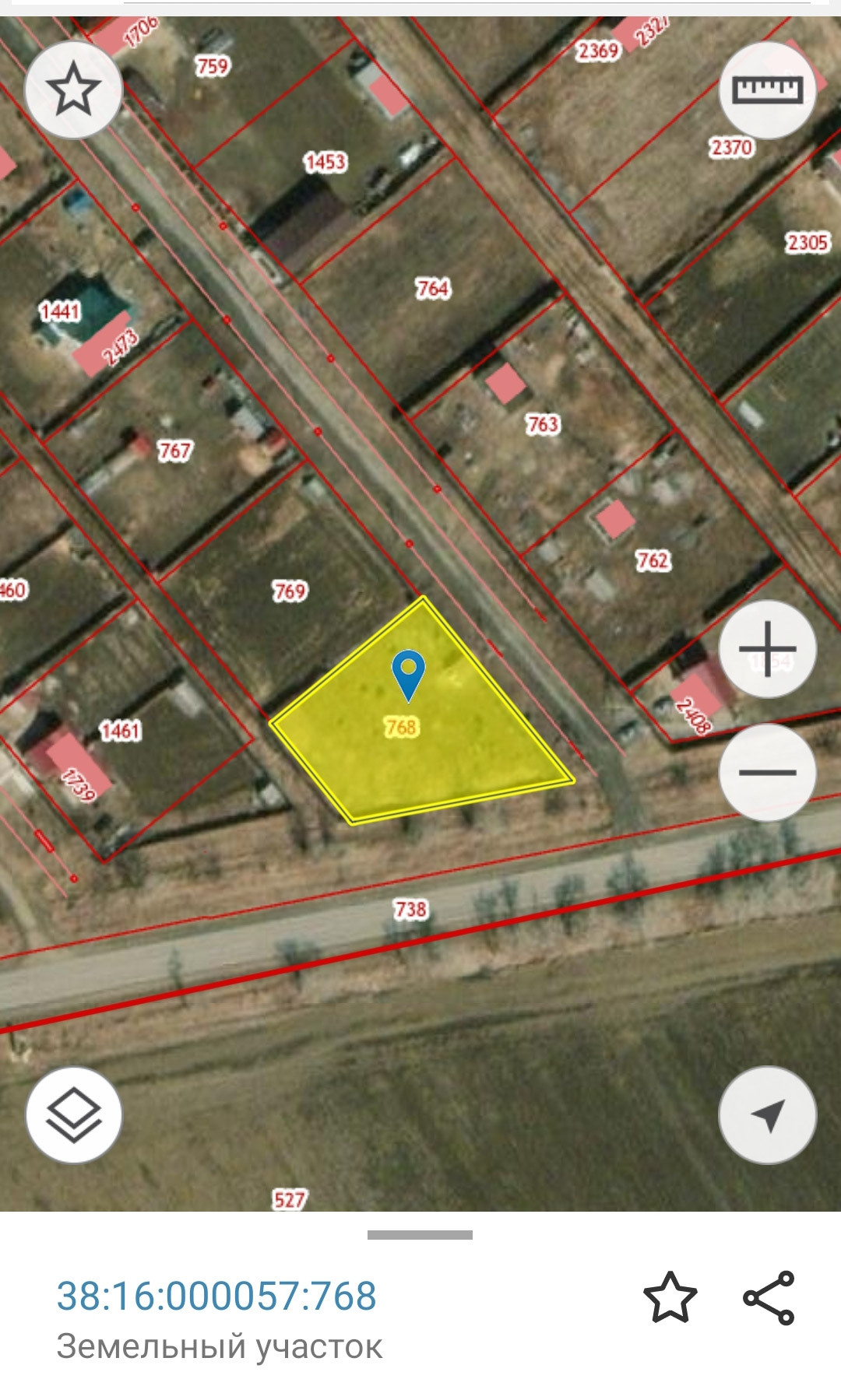 земельный участок, в собственности, не огорожен, под ижс, с кадастровым номером 38:16:000057:768