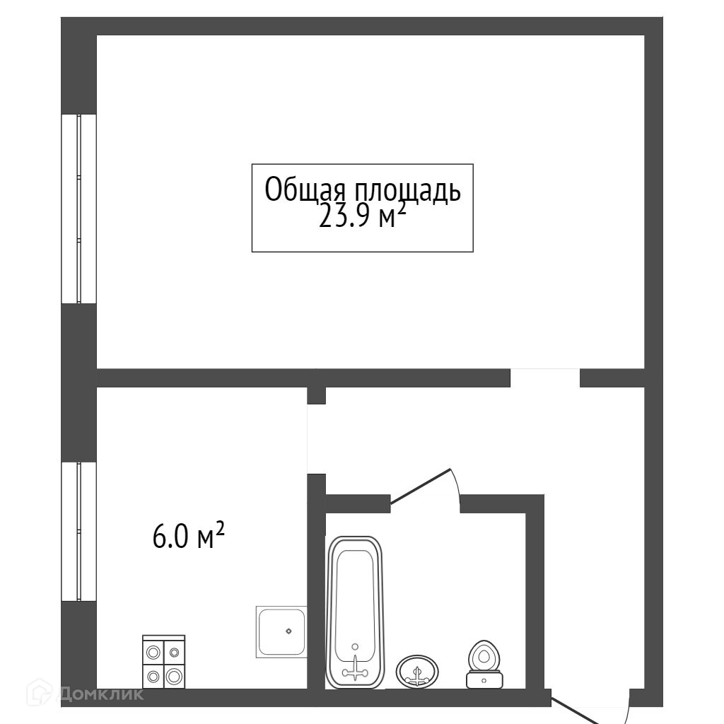Общая площадь 23.9 м2