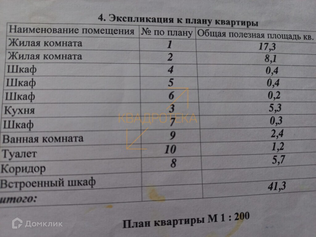 Общая площадь 41.3 м2
