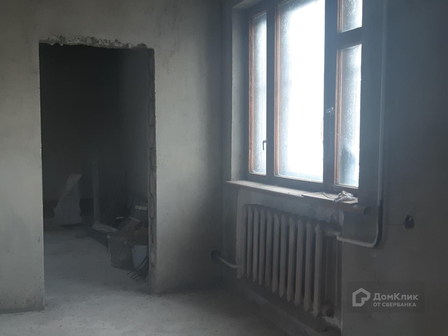 Внутри дом подготовлен под чистовую отделку: штукатурка, электропроводка, трубы проложены, котел и батареи. Дом построен из керамзитовых блоков.