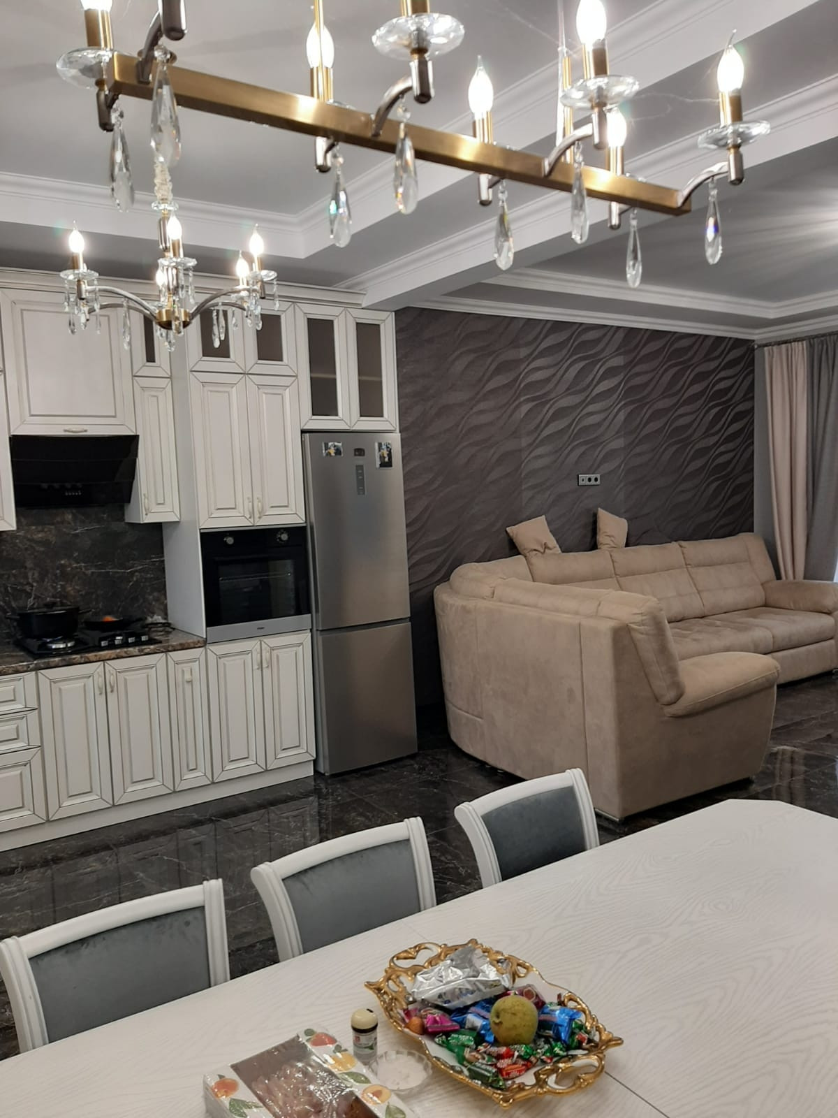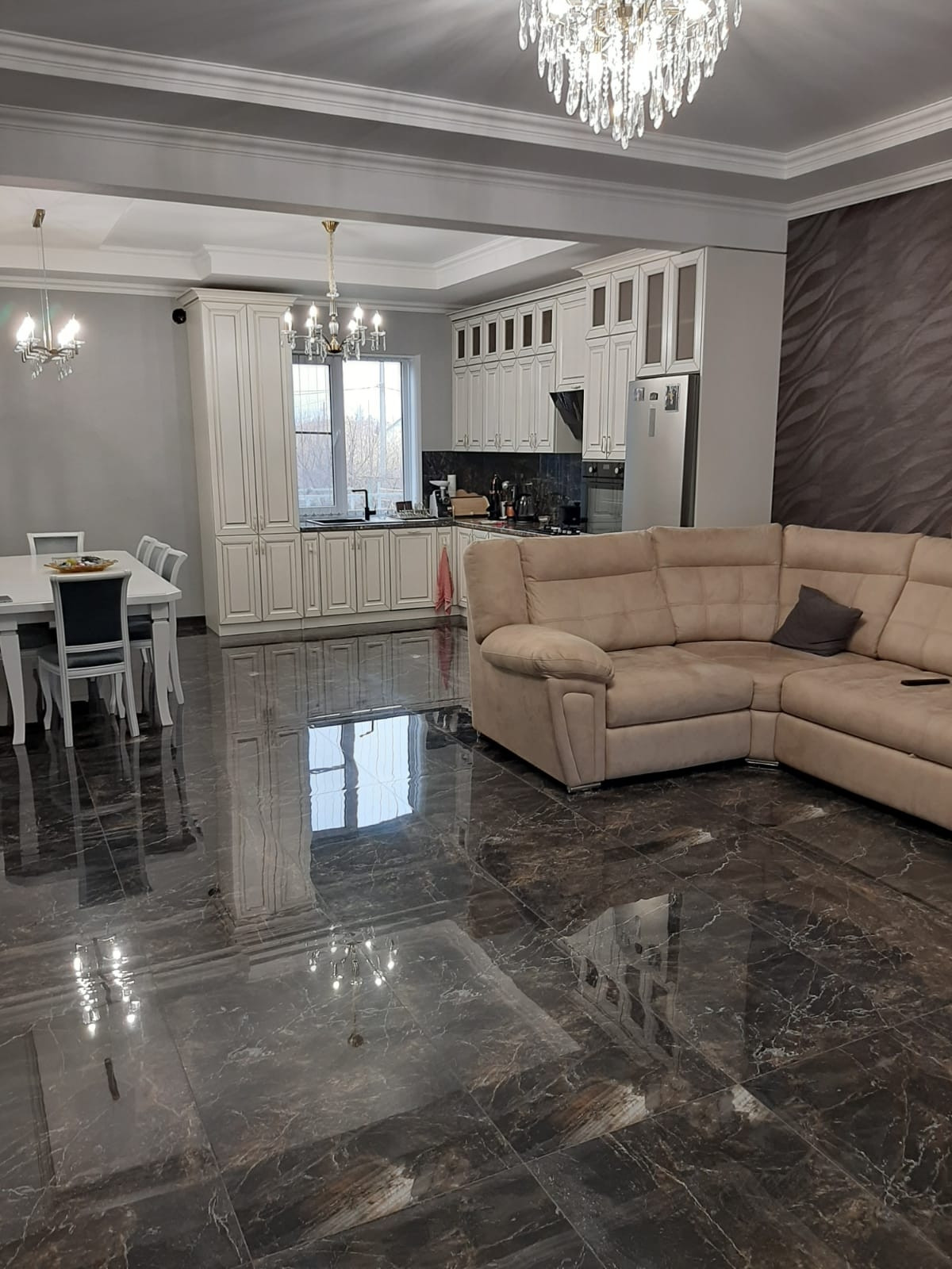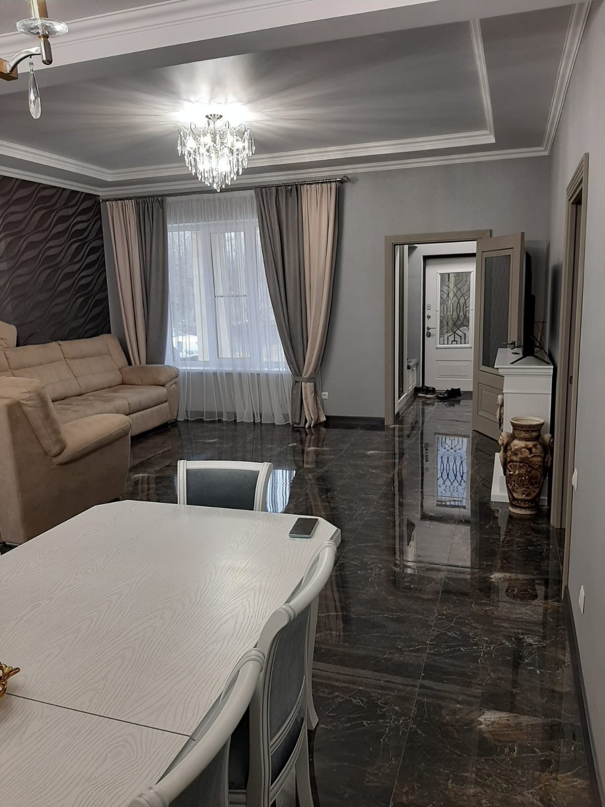 В доме холл,просторная кухня - гостиная и две спальни.Выполнен качественный современный ремонт,установлены новая сантехника,бытовая техника,мебель.Вам останется только занести свои вещи и жить с радостью ))