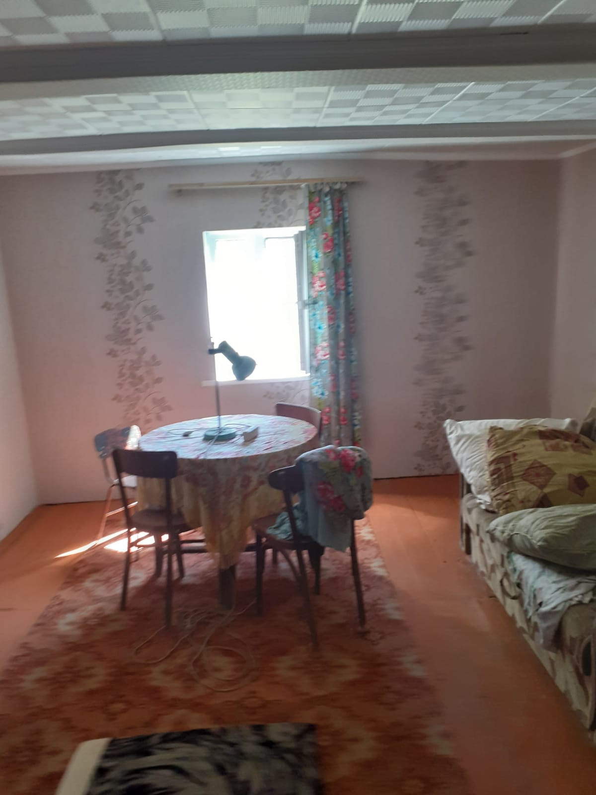 Внутри по периметру обшит гипсокартоном, установлены ПВХ окна.