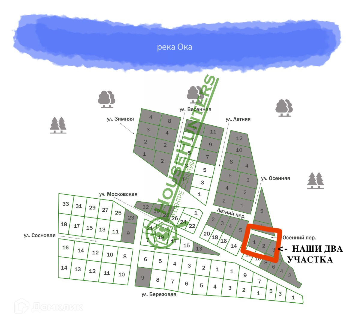 К участкам уже подведен газ и электричество. Так что можно сразу приступать к строительству.