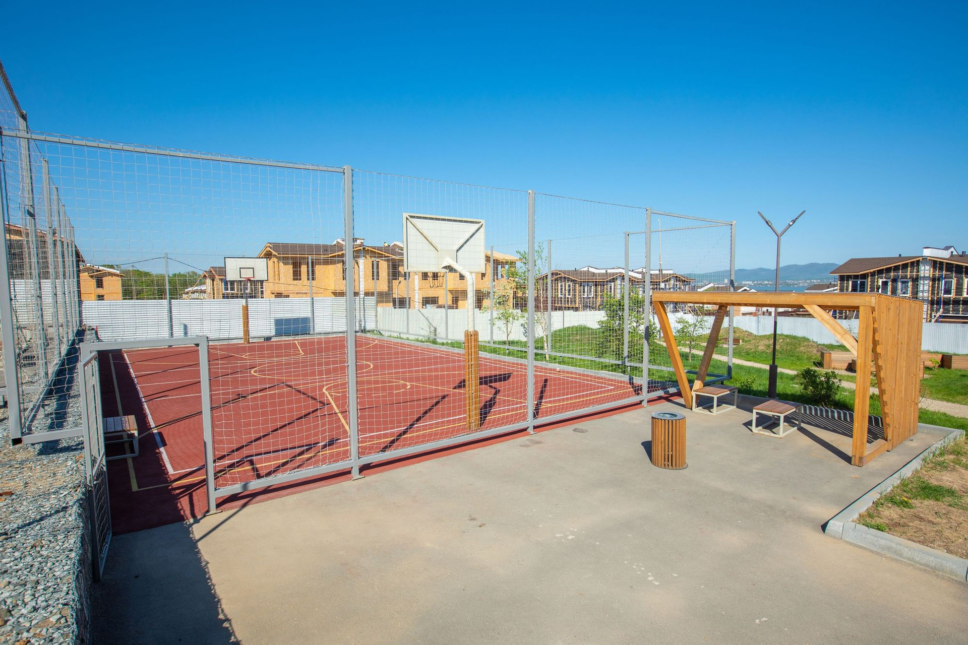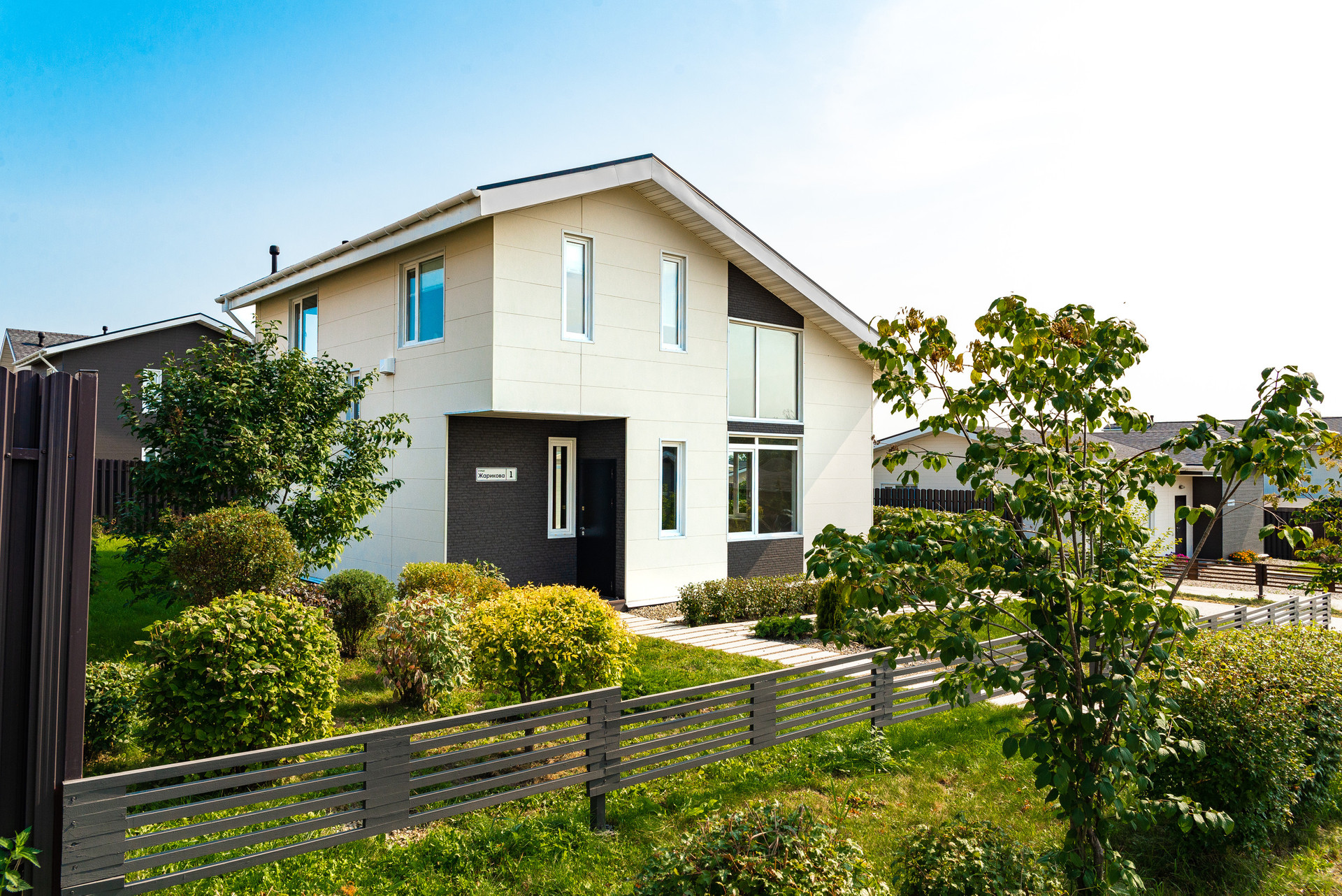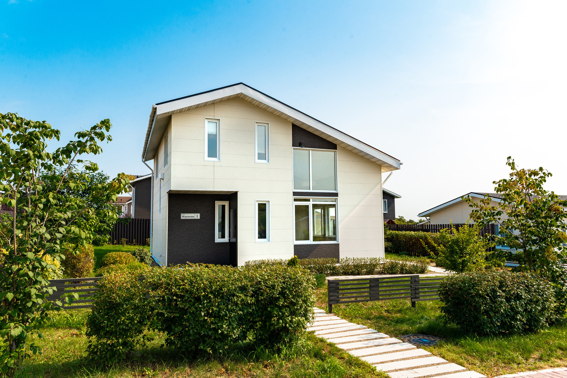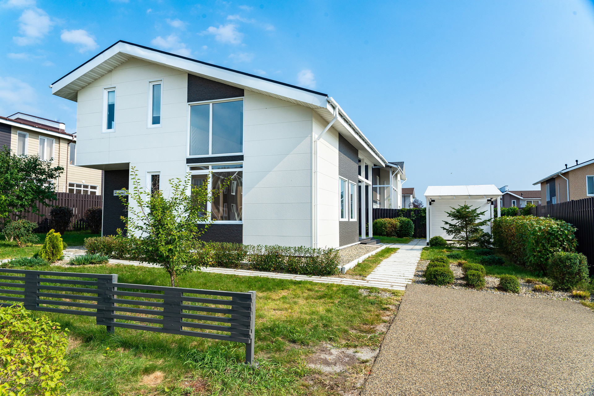 - бэк-ярд участка отделен от соседей высоким забором в общем стиле поселка, фронт-ярд – невысокий декоративный забор.