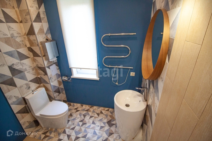 -Санузлы: на первом этаже сделан «под ключ» - уложена плитка, теплый пол, установлены сантехника, зеркало, полотенцесушитель, установлены выключатели, розетки, светильники. (титан – установлен в тех. помещении), на втором этаже санузел без отделки.