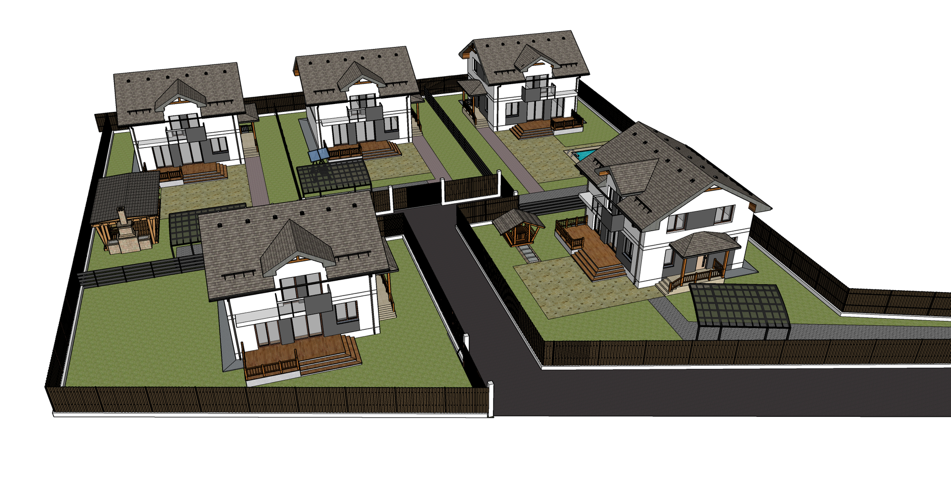 Коттеджный поселок "ОЗЕРНЫЙ" (п. Зима Южная) - закрытый загородный мини-поселок на пять домовладений, выполненных в едином стиле с готовой фасадной отделкой. Поселок расположен в районе с развитой инфраструктурой. Рядом есть детский сад, школа, магазины. На границе с поселком не будет застройки, так как поселок граничит с природоохранной зоной.