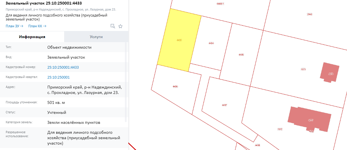 Кадастровый номер участка: 25:10:250001:4433