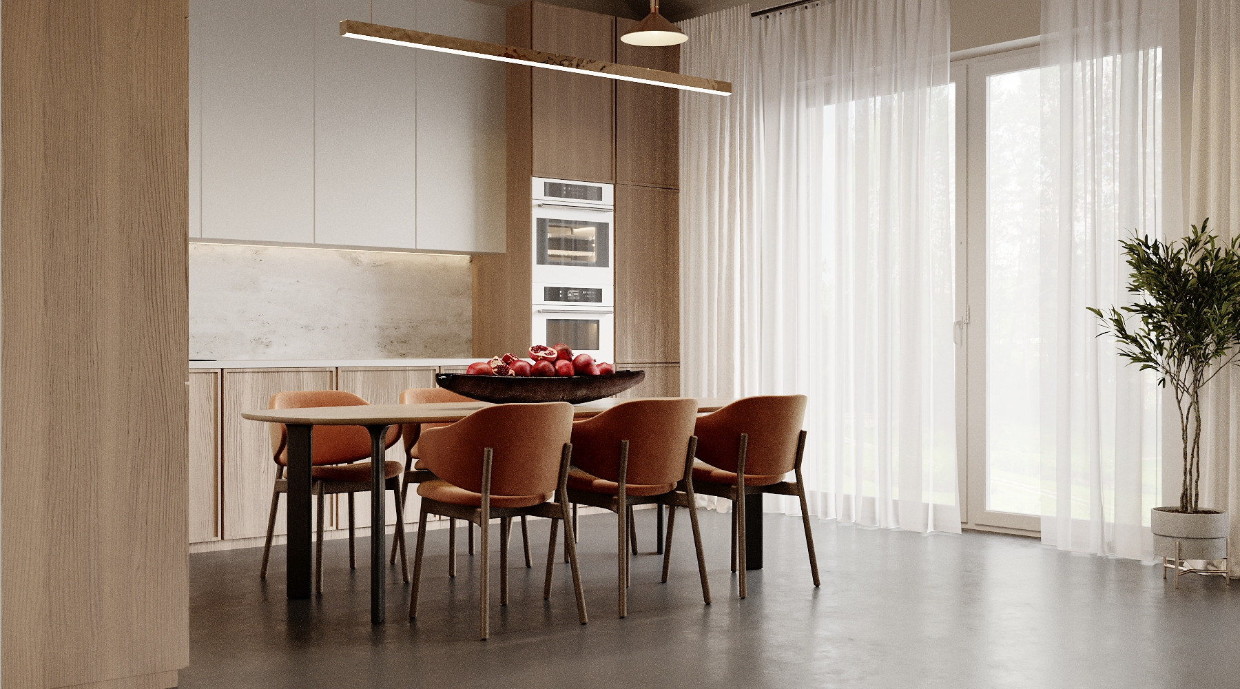• Просторная кухня: Спроектирована для удобства с большими местами для хранения и продуманным расположением бытовой техники.