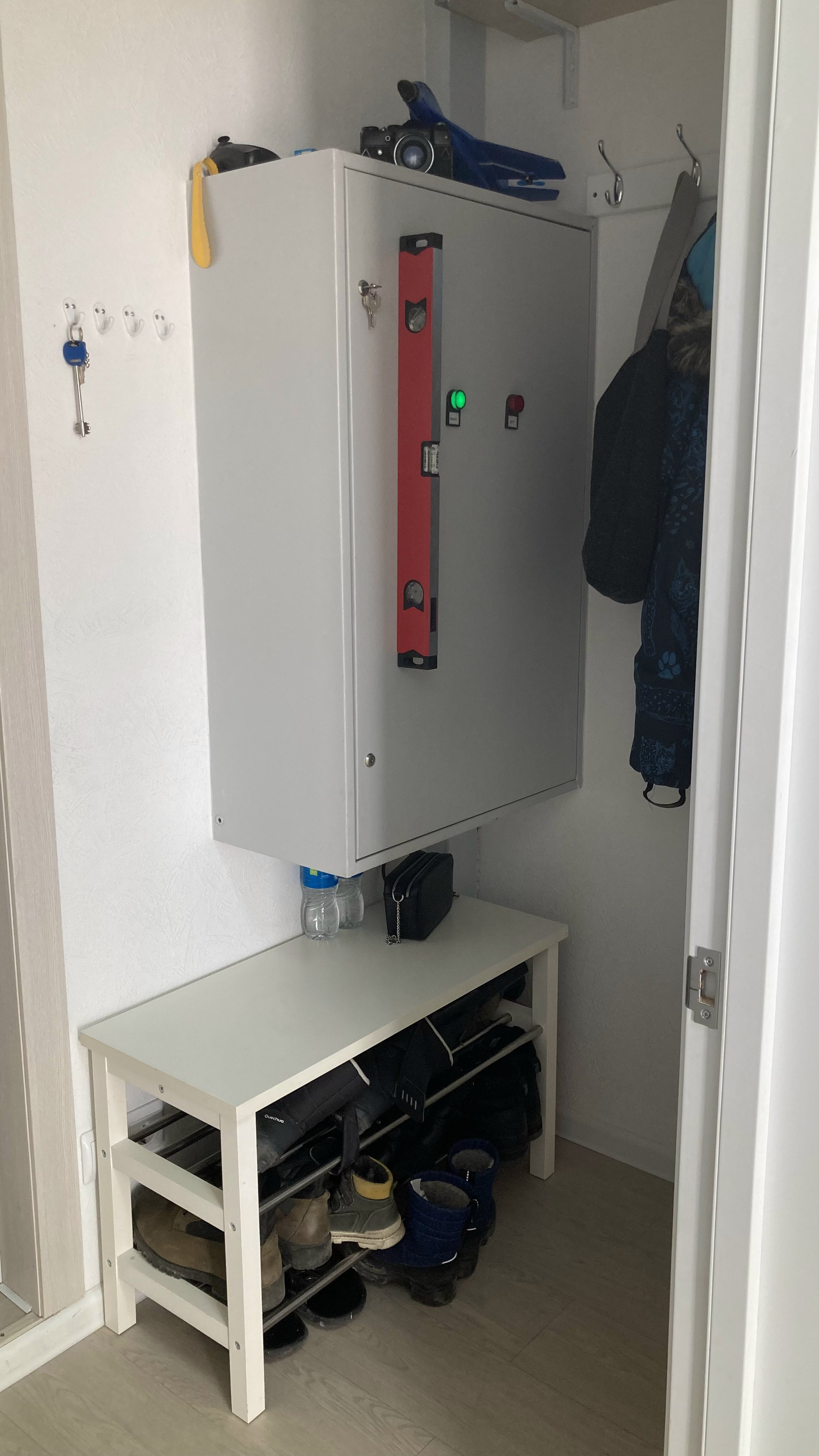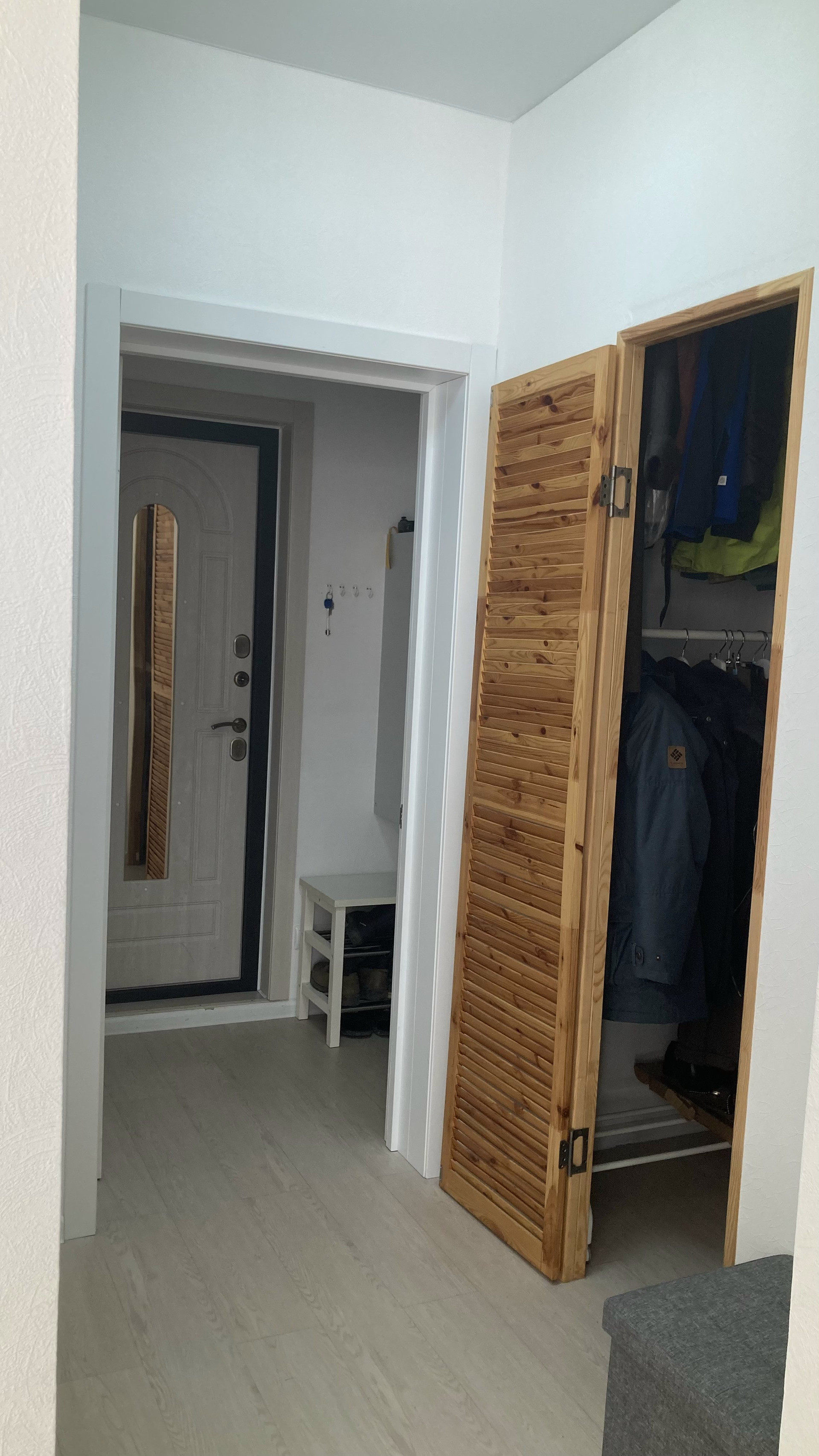 Гардероб в прихожей. Новая входная дверь с терморазрывом.