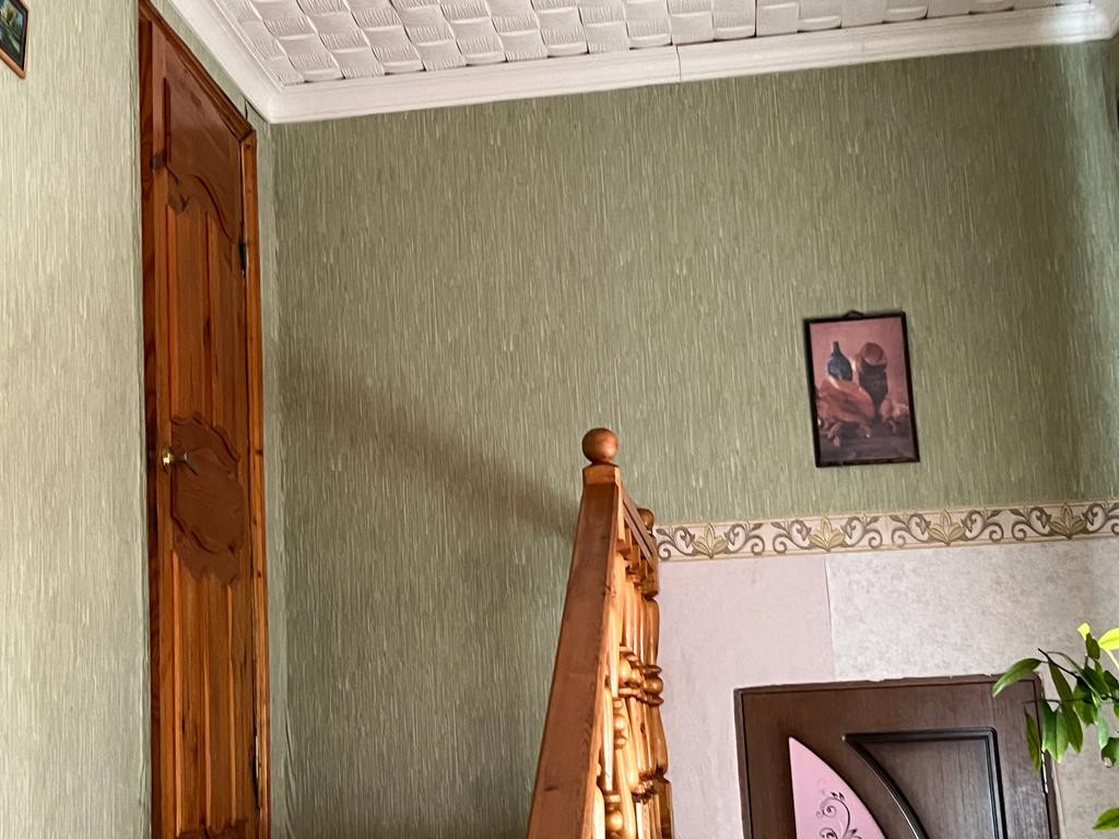 Хороший дом, в доме два этажа и один этаж подвальный, где находятся котельная, ванная комната с ванной и душем, большая кухня с двумя подсобными комнатами, а также туалет. На втором этаже четыре изолированные комнаты. При входе в дом имеется большая прихожая с комнатой. Во дворе есть гараж, летняя кухня, 4 сарая с подвалом (не затапливается) цветник, сад и огород. Торг уместен. Рядом имеется детский сад. Относительно недалеко находятся магазины. Отличные соседи.