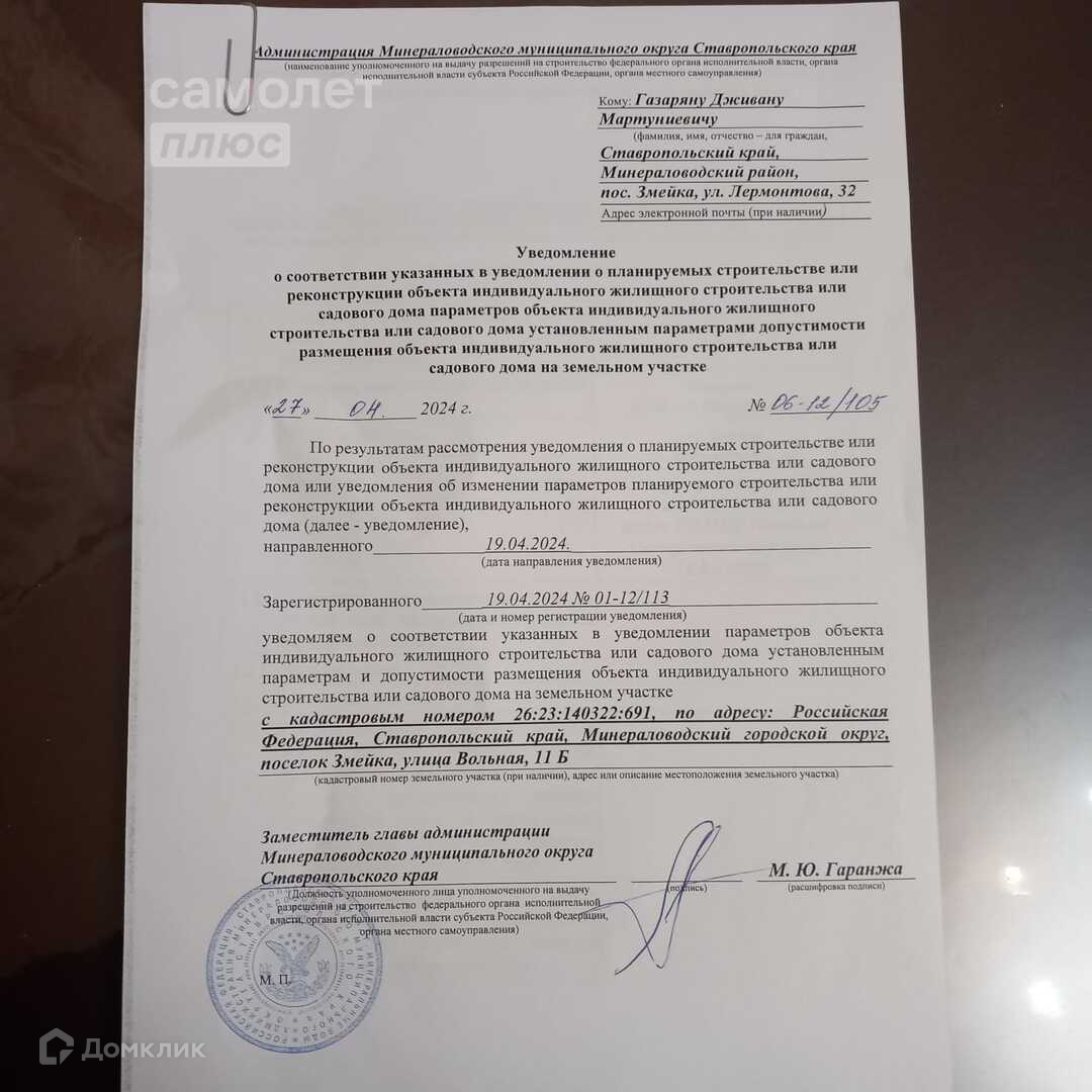Есть разрешение на строительство от апреля 2024 года. Документы на руках, готовы к сделке.