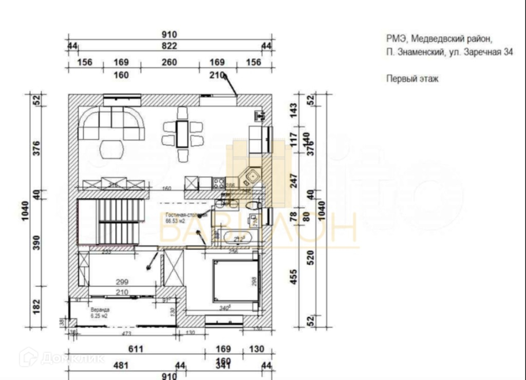 1-этажный дом, 160 м2, на продажу в посёлке Знаменский, Заречная улица, 36