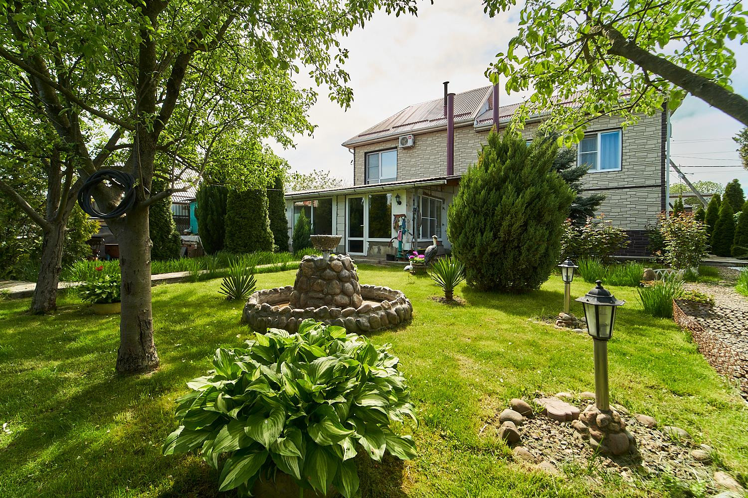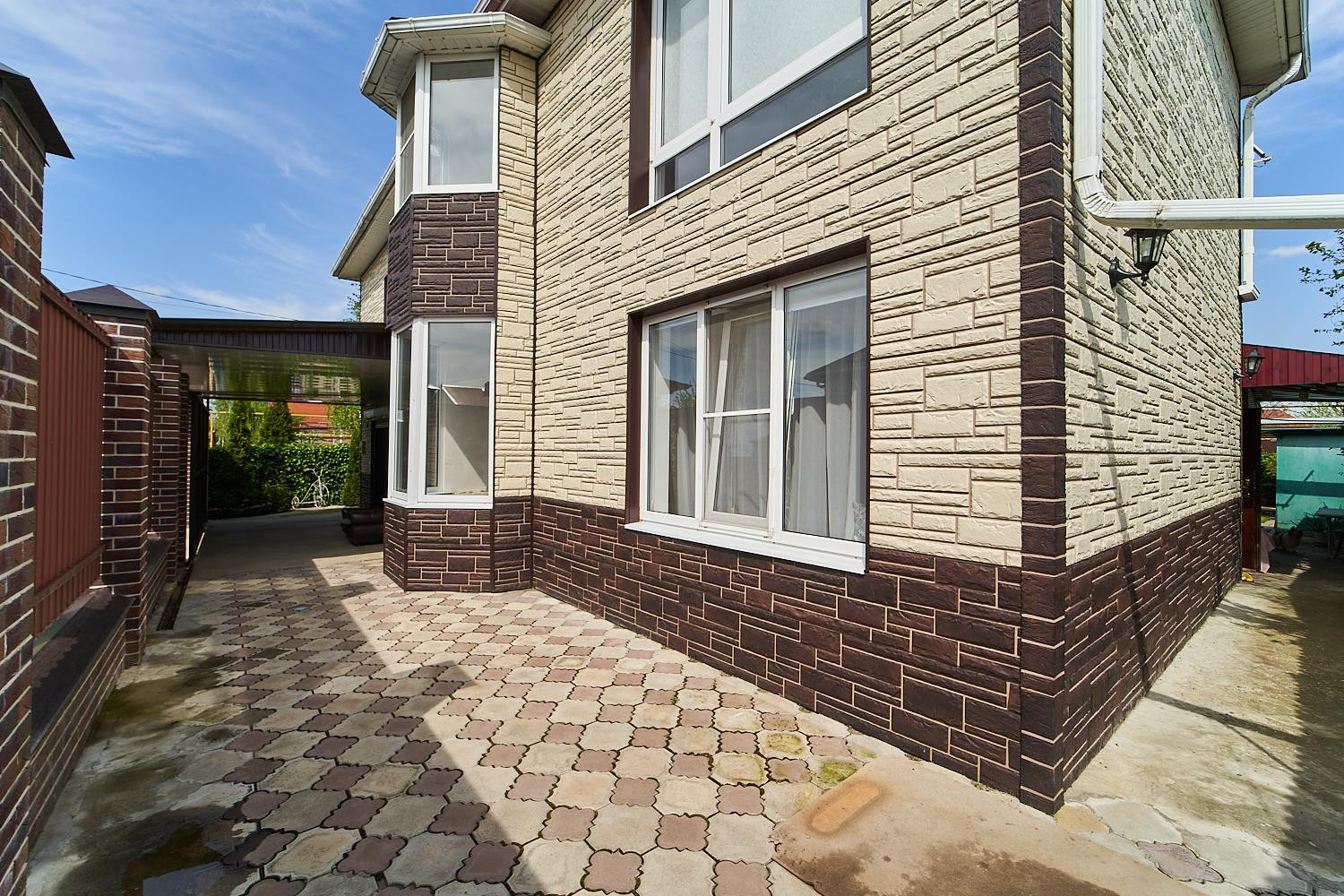 Подключено видеонаблюдение, во дворе плитка, навес из поликарбоната. Есть гараж. Во дворе вмещаются 2 машины. На участке сделан дизайнерский ландшафт с елями и фруктовыми деревьями.  В 20-и метрах магазины  и остановки. Школы, детские садики в шаговой доступности. Один из активно развивающих районов Краснодара.